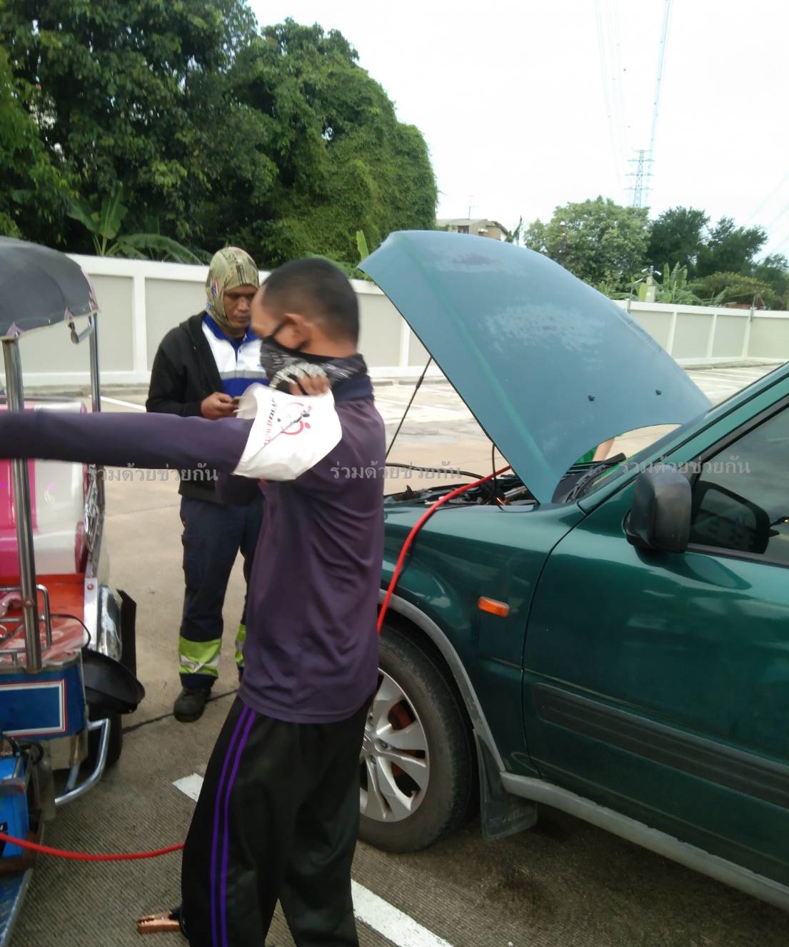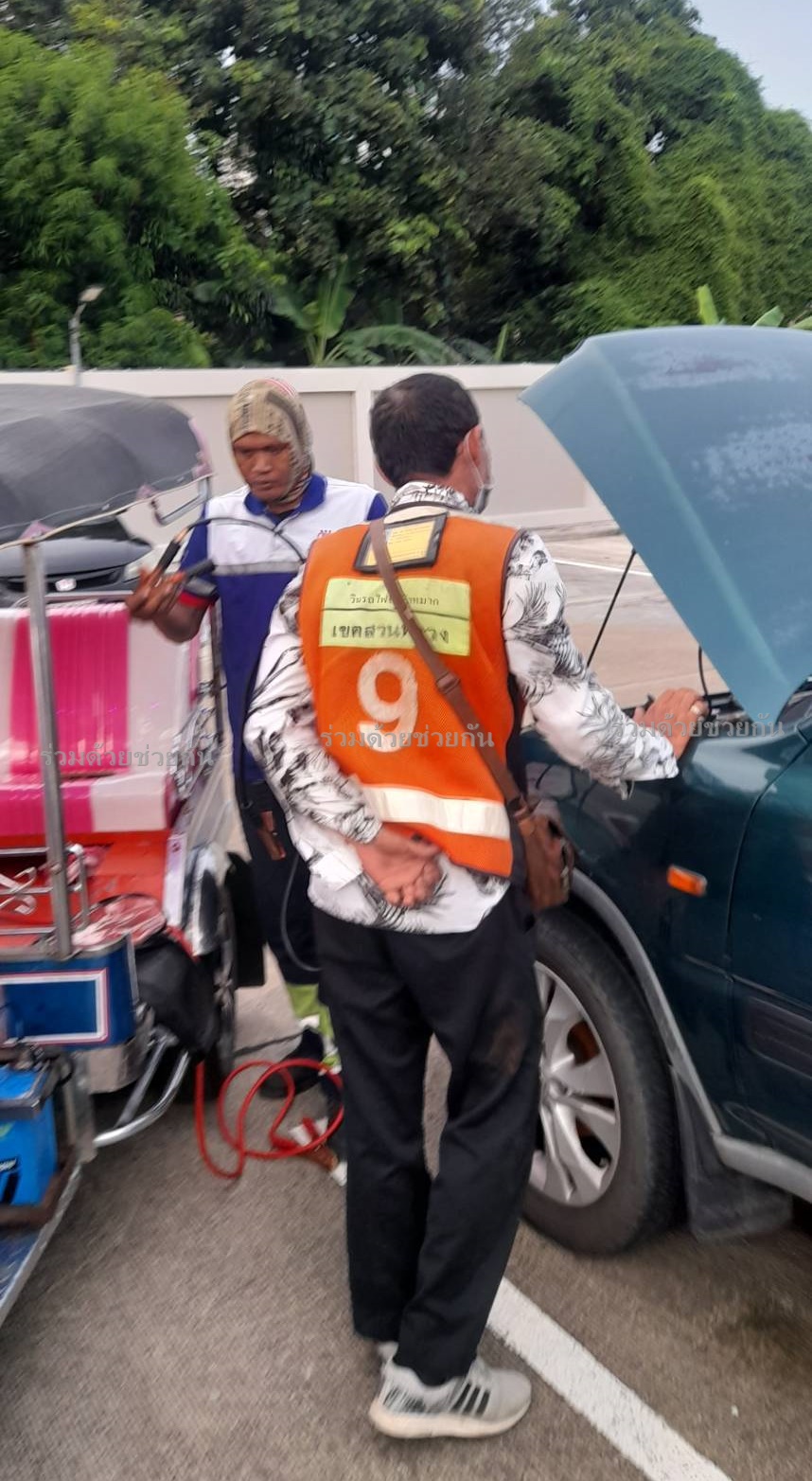 ประชาชนรถสตาร์ทไม่ติด อาสาร่วมด้วยเข้าช่วยเหลือพ่วงแบตเตอรี่ให้