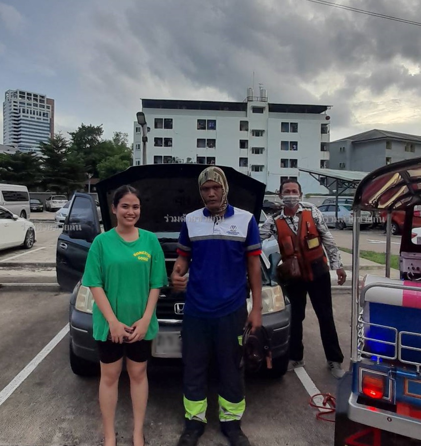 คุณปวริสา ขอความช่วยเหลือรถแบตเตอรี่หมด รถเก๋งฮอนด้า ซีอาร์-วี สีเขียว จอดอยู่บริเวณซอยศรีนครินทร์ 21 แขวงสวนหลวง เขตสวนหลวง กรุงเทพฯ ศูนย์สื่อสารร่วมด้วยช่วยกัน ประสาน อาสาร่วมช่วยกัน เข้าไปช่วยเหลือ