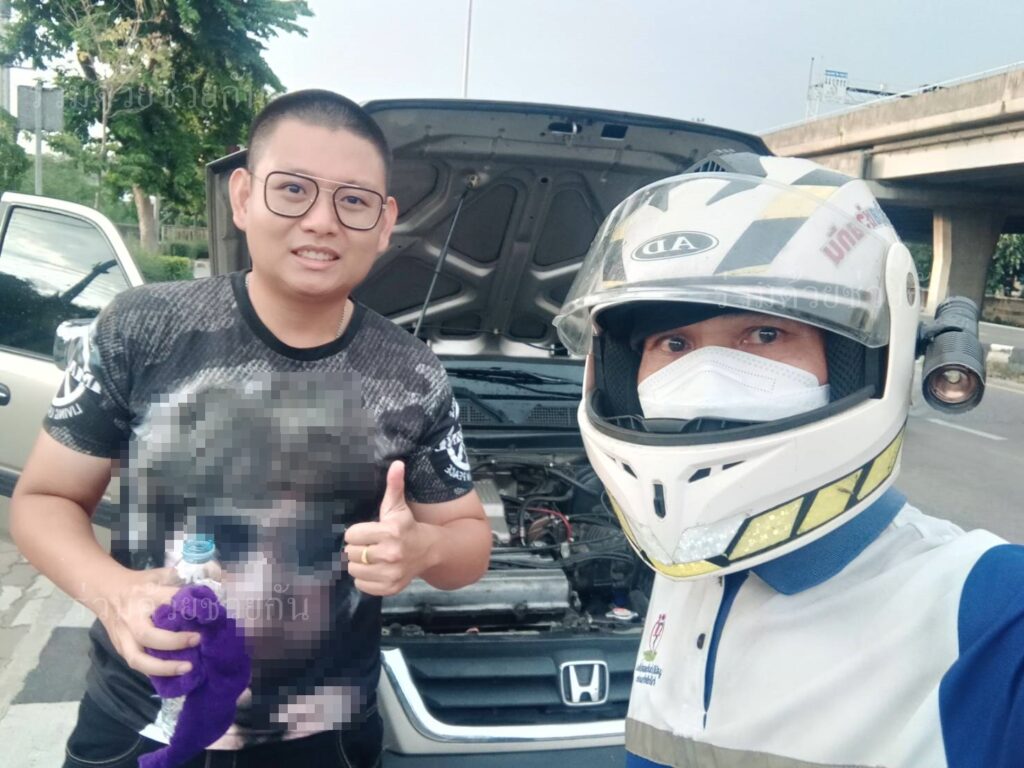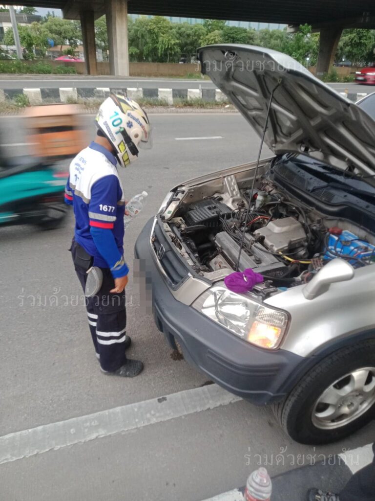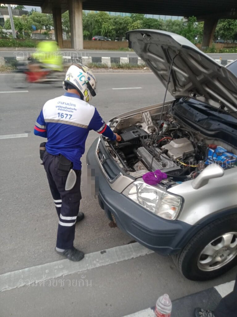 ประชาชนขอความช่วยเหลือรถจอดเสียระบบความร้อนขึ้น จอดอยู่ถนนประดิษฐ์มนูธรรม อาสาร่วมด้วยเข้าให้การช่วยเหลือ รถขับเคลื่อนไปต่อได้