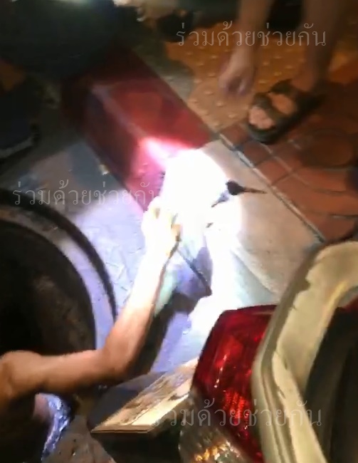 ช่วยลูกแมวติดใต้ท้องรถเก๋ง ถนนประชาชื่น