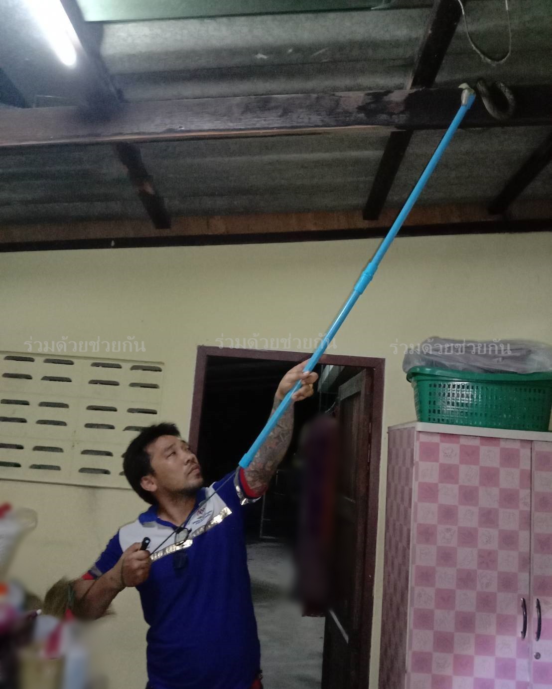 เจ้าของบ้านตกใจ งูเหลือมซุกใต้หลังคา แจ้งอาสาร่วมด้วยช่วยจับ
