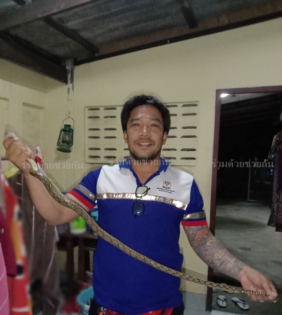อาสาร่วมด้วยฐานคุ้มภัย รับแจ้งประชาชนขอความช่วยเหลือ มีงูเข้าบ้าน ที่ซอยรามอินทรา 127 แขวงมีนบุรี เขตมีนบุรี กรุงเทพฯ จึงเดินทางเข้าไปช่วยจับงู
