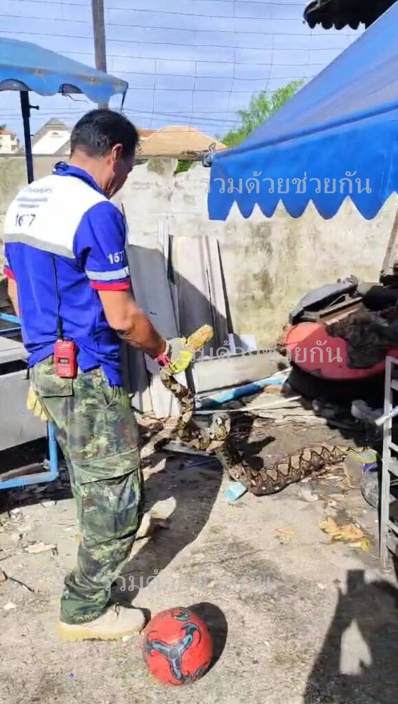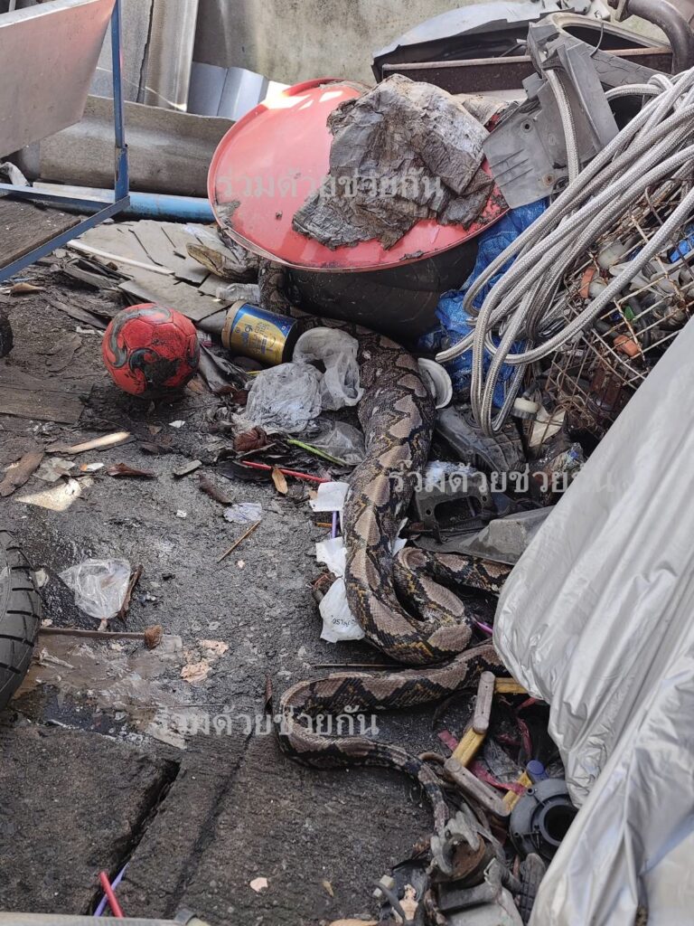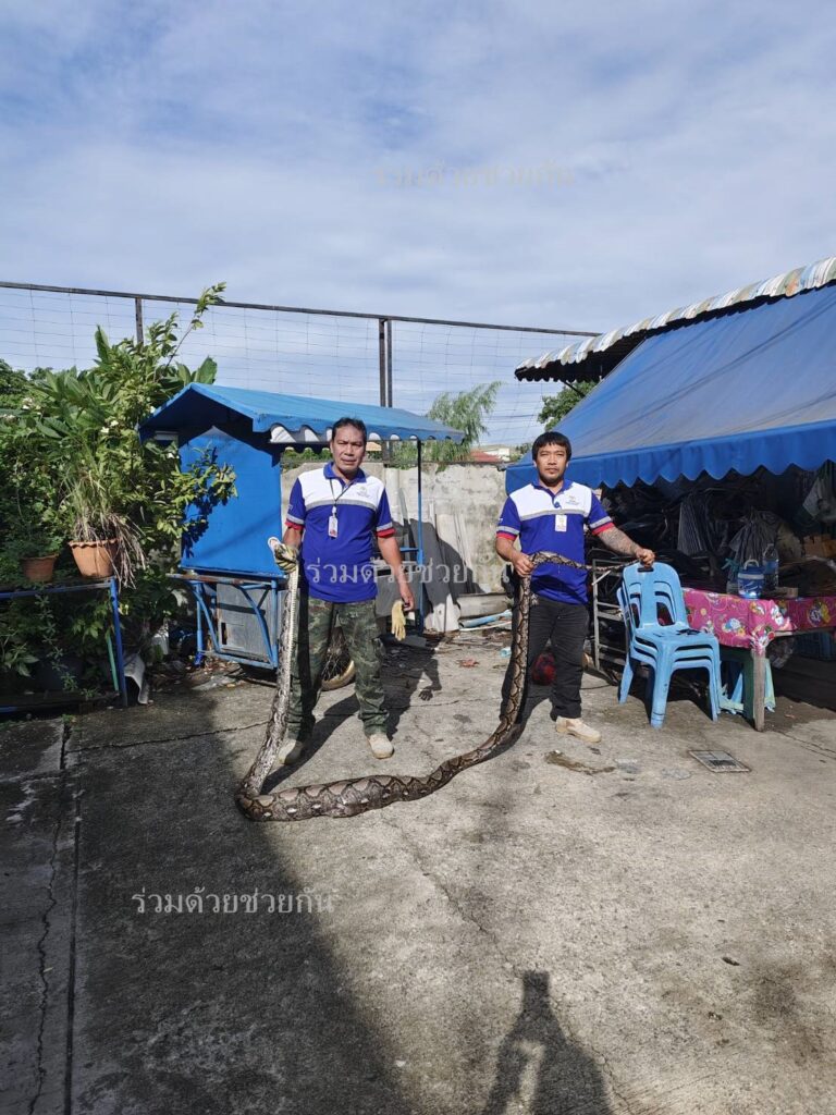 งูเหลือมบุกบ้าน ภายในซอยรามคำแหง 152 อาสาให้การช่วยเหลือจับงูได้เป็นที่เรียบร้อย