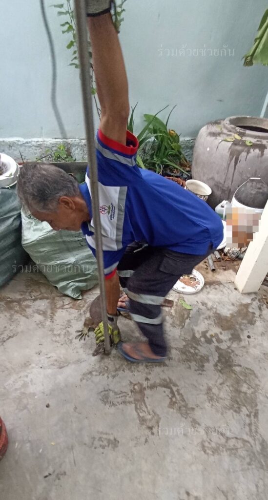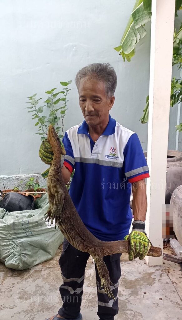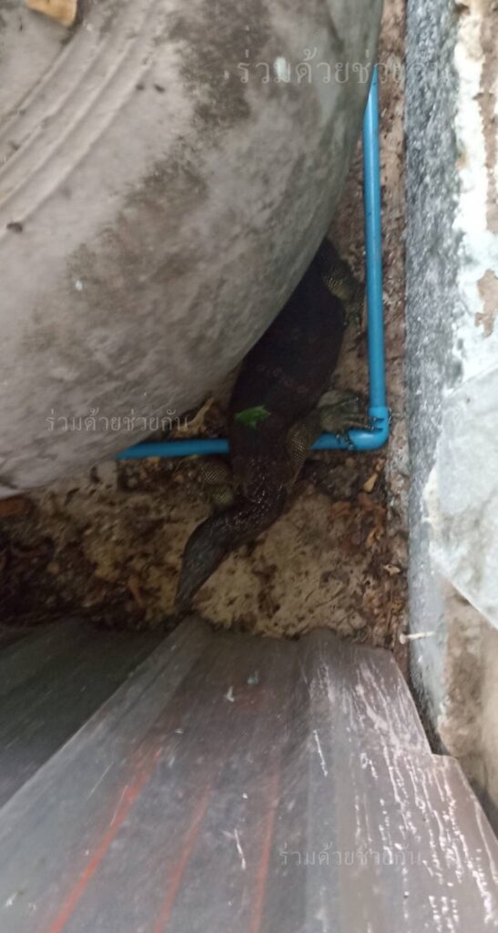 อาสาร่วมด้วยได้เข้าตรวจสอบพบเป็นตัวเงินตัวทองจำนวน 1 ตัว ความยาวประมาณ 1 เมตร หลบซ่อนตัวอยู่ข้างโอ่งน้ำบริเวณบ้านพัก จึงได้นำอุปกรณ์เข้าช่วยเหลือ ทำการคล้องจับตัวดึงออกมาได้เป็นผลสำเร็จ และนำไปปล่อยคืนสู่ธรรมชาติเป็นที่เรียบร้อย พื้นที่สน.ราษฎร์บูรณะ