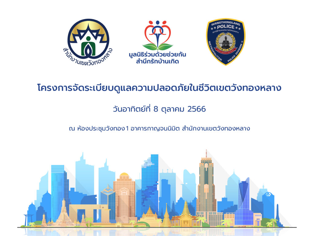 ตามที่ กรุงเทพมหานคร โดยสำนักเทศกิจ และ มูลนิธิร่วมด้วยช่วยกันสำนึกรักบ้านเกิด ผนึกกำลังลงนามความร่วมมือในการดูแลความเป็นระเบียบเรียบร้อยของบ้านเมือง บูรณาการให้เกิดการปฏิบัติงานร่วมกันอย่างเป็นแบบแผนนั้น ทางมูลนิธิร่วมด้วยช่วยกันสำนึกรักบ้านเกิด ร่วมกับ สำนักงานเขตวังทองหลาง จัดทำ โครงการจัดระเบียบดูแลความปลอดภัยในชีวิตเขตวังทองหลาง เพื่อพัฒนาความร่วมมือด้านการให้บริการสาธารณะ เสริมสร้างความรู้ เพิ่มพูนทักษะให้กับเจ้าหน้าที่และอาสาสมัครร่วมด้วยช่วยกัน ในการจัดระเบียบดูแลความปลอดภัยในชีวิตและทรัพย์สินให้กับประชาชน สนับสนุนให้เกิดการเชื่อมโยงข้อมูลข่าวสาร รับแจ้งเหตุที่ก่อให้เกิดความไม่ปลอดภัย ความไม่เป็นระเบียบเรียบร้อยบนถนนทางเดินเท้า ปัญหาร้านค้าหาบเร่แผงลอย ปัญหาจุดเสี่ยง-จุดอันตราย ปัญหาการจราจร เพื่อแก้ไขความเดือดร้อนของประชาชนในพื้นที่เขตวังทองหลาง