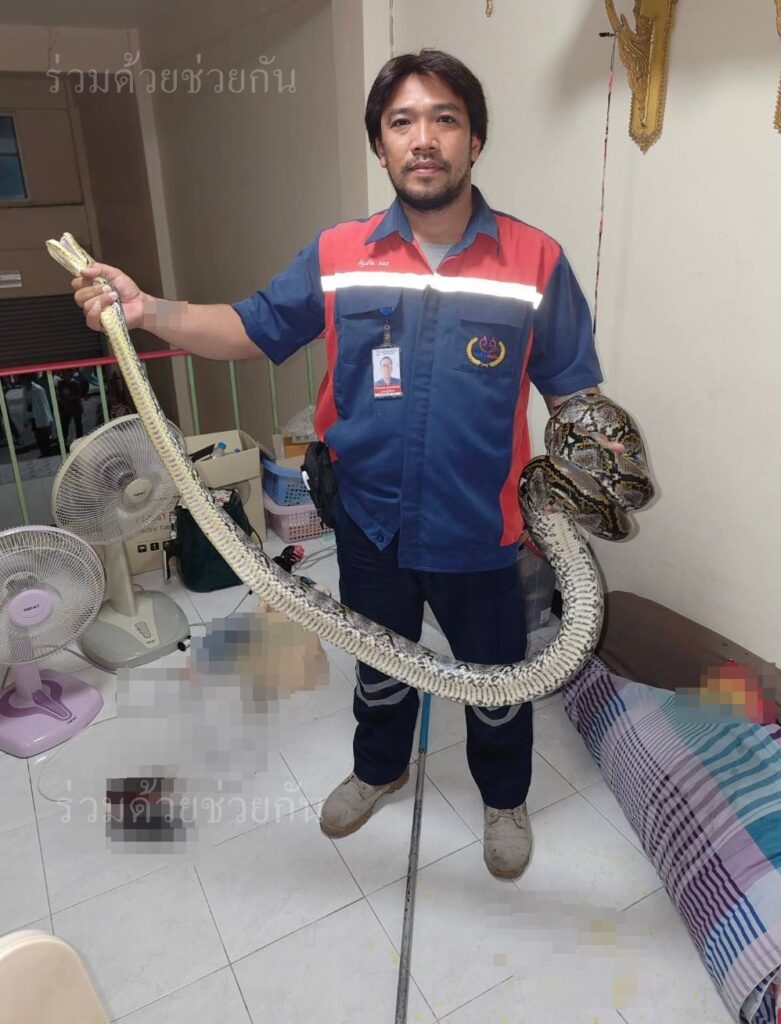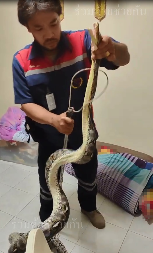 ประชาชนขอความช่วยเหลือให้ช่วยจับงูเหลือมยาว 4 เมตร ถนนเสรีไทย ซอย 48 อาสาร่วมด้วยเร่งช่วยเหลือจับไปปล่อยป่าเป็นที่เรียบร้อย