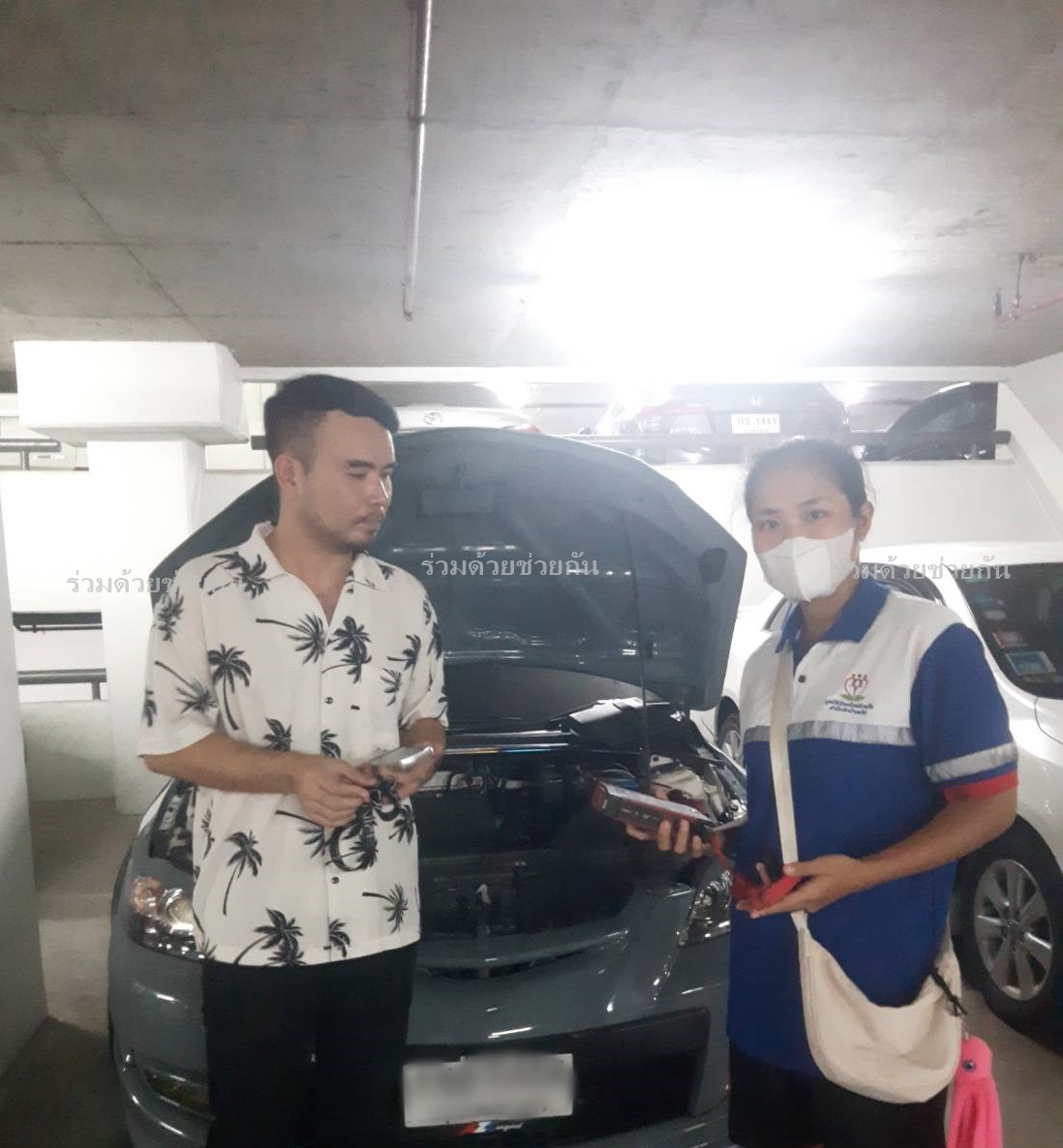 อาสาร่วมด้วยช่วยกัน รับแจ้งจากประชาชนขอความช่วยเหลือ แบตเตอรี่รถยนต์หมด รถเก๋งโตโยต้า สีเทาดำ จอดอยู่ภายในลานจอดรถคอนโด ใกล้แยกรัชดา-สุทธิสาร ถนนรัชดาภิเษก แขวงสามเสนนอก เขตห้วยขวาง กรุงเทพฯ
