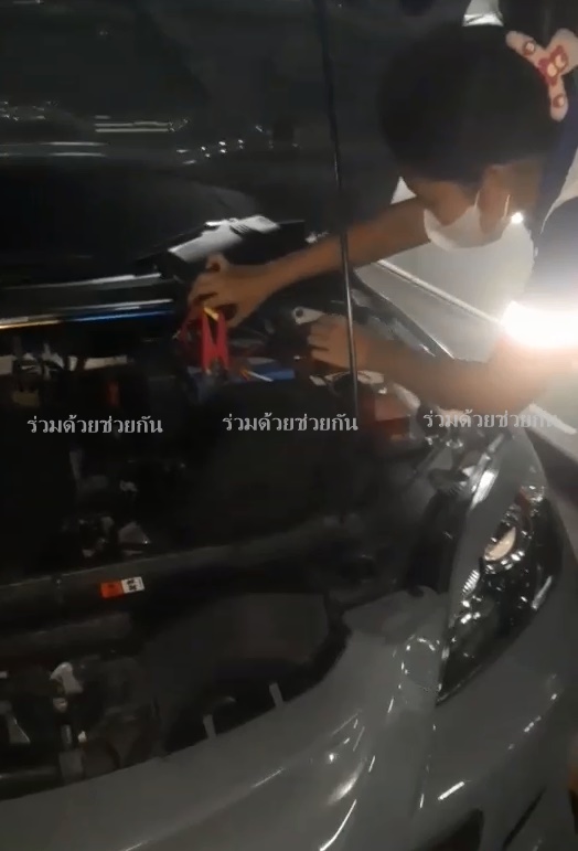 ประชาชนรถสตาร์ทไม่ติด แจ้งอาสาร่วมด้วยเข้าช่วยเหลือพ่วงแบตเตอรี่ให้สำเร็จ สามารถเดินทางต่อไปได้