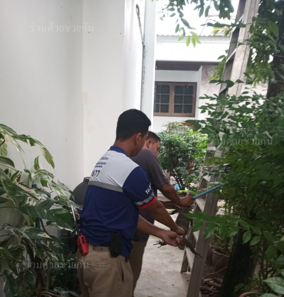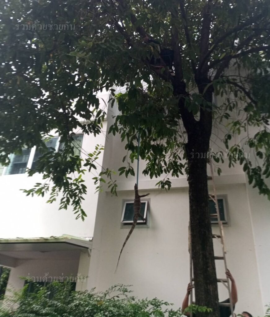 ศูนย์สื่อสารร่วมด้วยช่วยกัน ประสานอาสาร่วมด้วยโพธิ์คู่ 07,12 นำอุปกรณ์เข้าช่วยเหลือ โดยได้ปีนบันไดขึ้นไปบนต้นไม้ ทำการใช้ไม้คล้องจับตัวเอาไว้ได้เป็นผลสำเร็จ และนำไปปล่อยคืนสู่ธรรมชาติเป็นที่เรียบร้อย