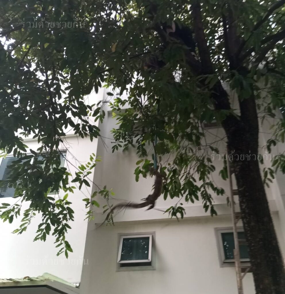 คุณน้ำหวาน แจ้งผ่านสายด่วน 1677 ขอความช่วยเหลือให้ช่วยจับตัวเงินตัวทองอยู่บนต้นไม้ความสูง 6 เมตร อยู่ใกล้กับบ้านพัก ถ.พหลโยธิน ซอย 7 แขวงสามเสนใน เขตพญาไท กรุงเทพฯ