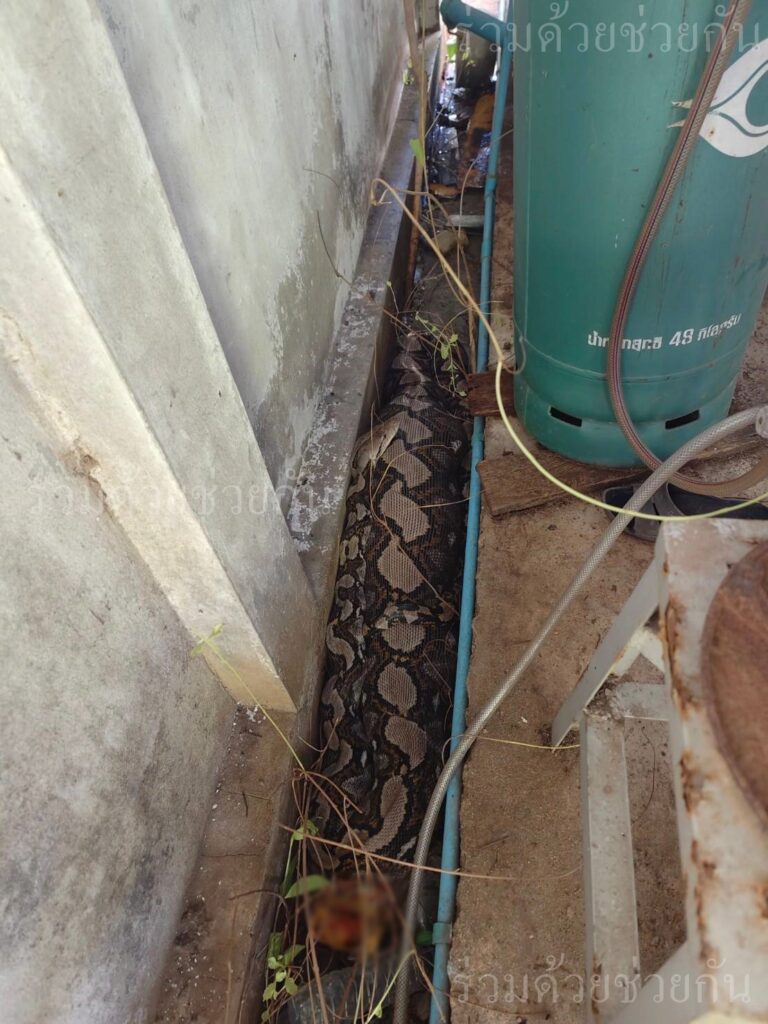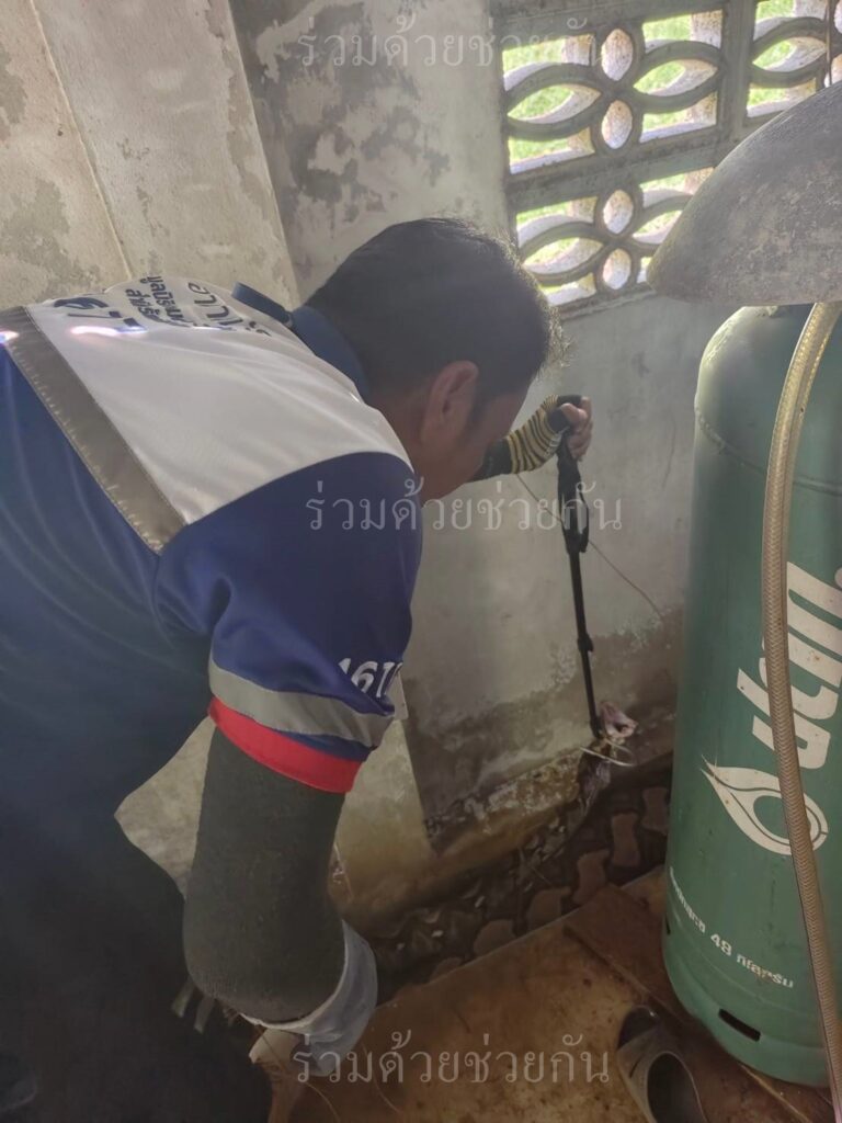 อาสาร่วมด้วยฯ ช่วยเหลือจับงูเหลือมบริเวณร่องน้ำหลังบ้าน ซอยสามวา 6 ถนนสามวา