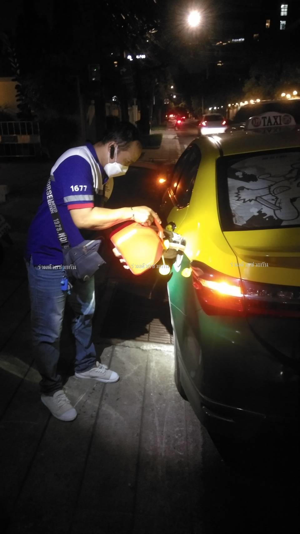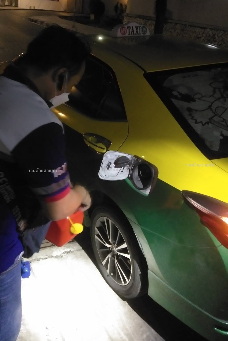 รถแท็กซี่น้ำมันหมดกลางทาง อาสาร่วมด้วยช่วยเติมน้ำมันเชื้อเพลิงให้ รถวิ่งต่อไปได้