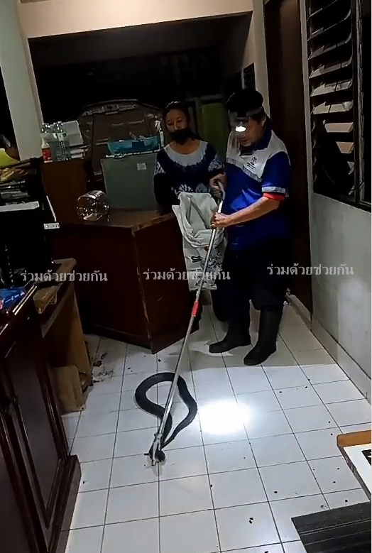 สุดผวา งูเห่าเลื้อยเข้าบ้าน แจ้งอาสาร่วมด้วยช่วยจับ