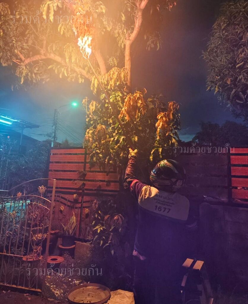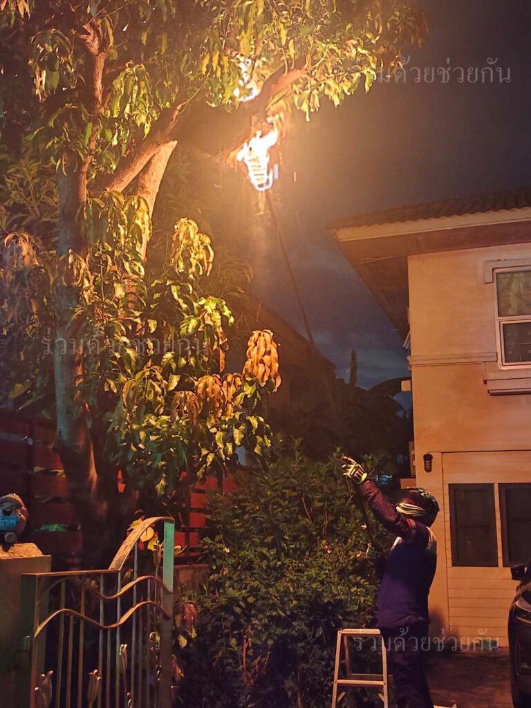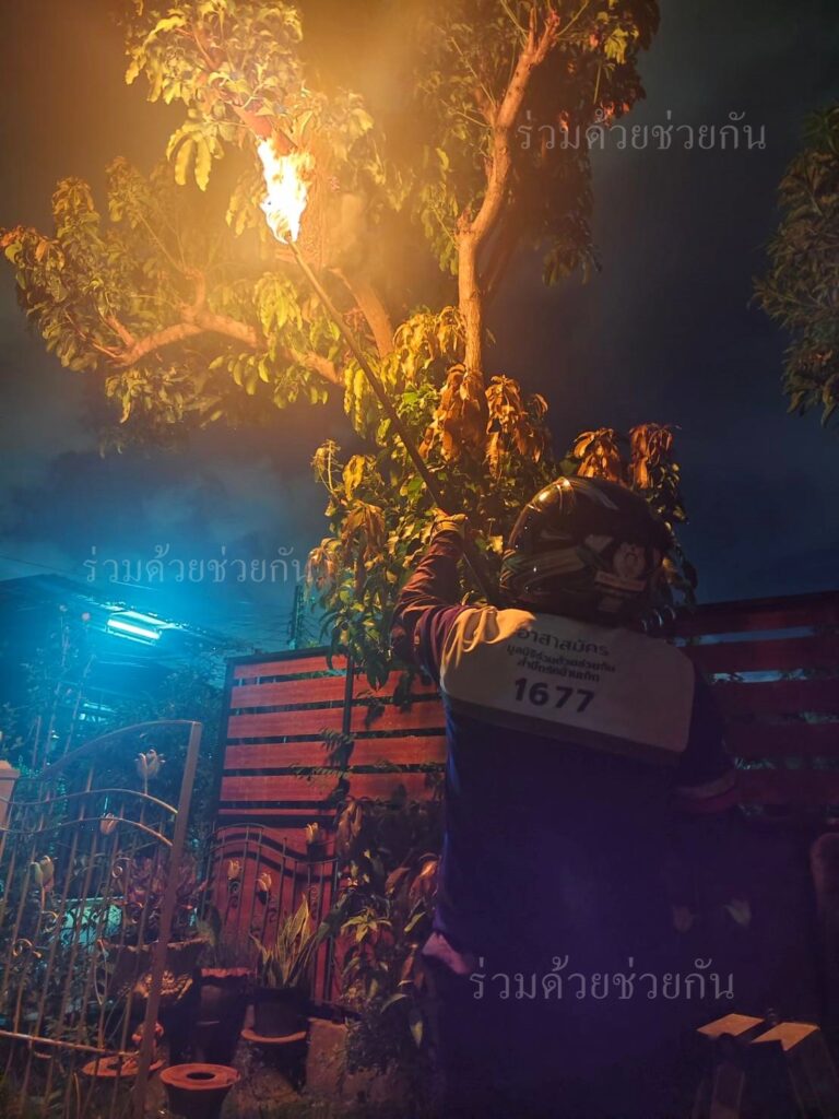 อาสาร่วมด้วยช่วยกัน รับแจ้งจากประชาชนขอความช่วยเหลือกำจัดสัตว์มีพิษ อยู่บนต้นไม้ ใกล้ที่พักอาศัย ถนนคุ้มเกล้า ซอย 10 แขวงแสนแสบ เขตมีนบุรี กรุงเทพฯ เกรงว่าจะเป็นอันตรายกับผู้พักอาศัย
