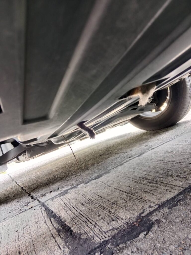 ลูกแมวติดใต้ท้องรถยนต์ ภายในหมู่บ้านวรารักษ์ ซอยเลียบคลองสอง 27 ถนนเลียบคลองสอง อาสาช่วยเหลือนำลูกแมวจำนวน 4 ตัวออกมาได้ปลอดภัย