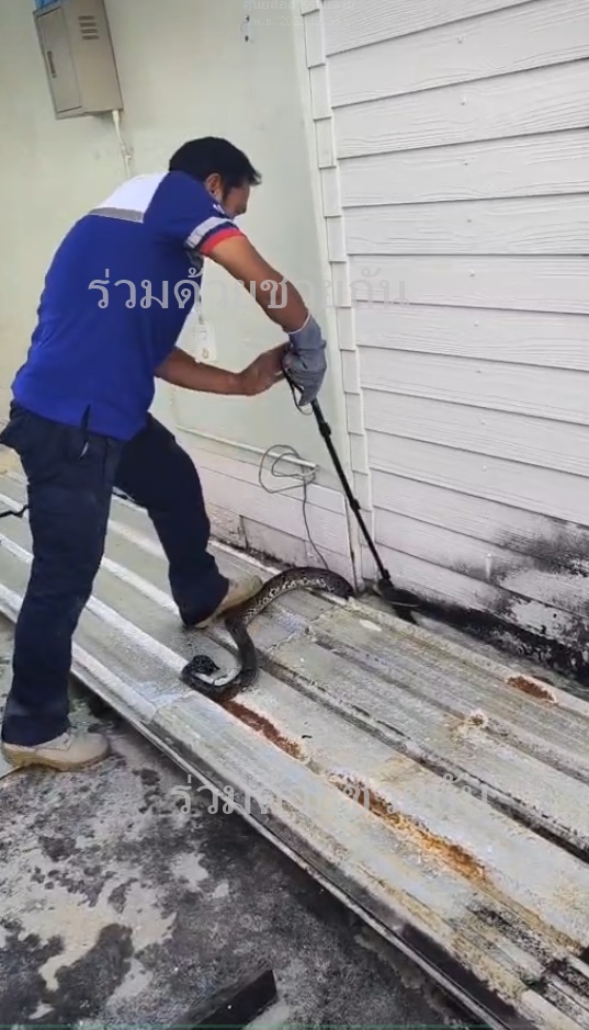 อาสาร่วมด้วยฐานคุ้มภัย ให้การช่วยเหลือประชาชนจับงูเหลือมยาว 3 เมตรบริเวณบ้านพัก ภายในซอยคู้บอน 27 แขวงท่าแร้ง เขตบางเขน กรุงเทพฯ