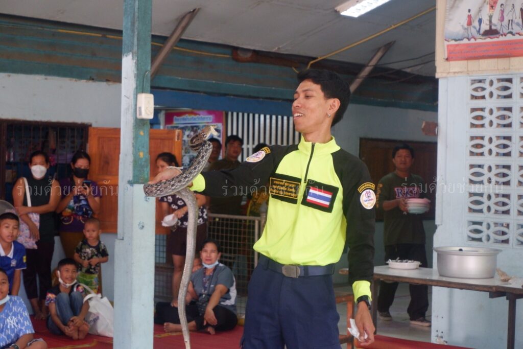 วันที่ 5 พ.ย. 2566 อาสาร่วมด้วยฐานคุ้มภัย จัดกิจกรรมแจกของรางวัล และจัดอบรม เรื่อง สัตว์มีพิษ (งูบางชนิดที่พบได้บ่อย) โดยมี ผู้อำนวยการโรงเรียน คณะครู นักเรียนและผู้ปกครอง โรงเรียนวัดจันทาราม ตำบลคูบางหลวง อำเภอลาดหลุมแก้ว จังหวัดปทุมธานี เข้าร่วมงาน พร้อมมอบอุปกรณ์การเรียน อุปกรณ์กีฬา เครื่องอุปโภคบริโภค และจัดเลี้ยงอาหารกลางวัน