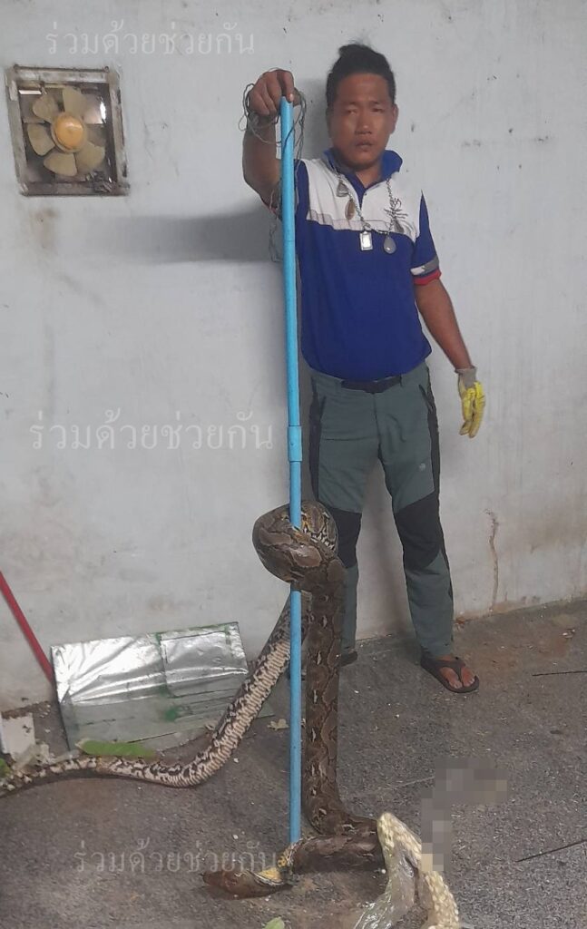 อาสาร่วมด้วยคุ้มภัย 026 ได้เข้าตรวจสอบพบเป็นงูเหลือมจำนวน 1 ตัว ความยาวประมาณ 3 เมตร หลบซ่อนตัวอยู่ภายในที่พักอาศัย จึงได้นำอุปกรณ์เข้าช่วยเหลือ ทำการจับตัวงูเอาไว้ได้เป็นผลสำเร็จ และนำไปปล่อยคืนสู่ธรรมชาติเป็นที่เรียบร้อย พื้นที่สน.โคกคราม