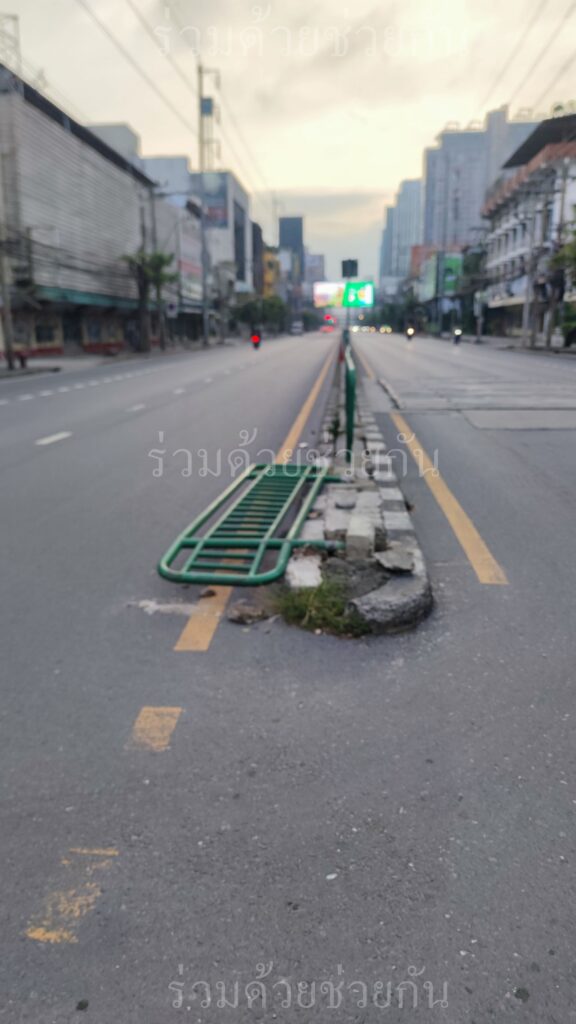 อาสาร่วมด้วยช่วยกัน แจ้งแผงเหล็กเกาะกลางล้ม บริเวณจุดกลับรถ ศูนย์นิสสัน ถนนเพชรบุรี