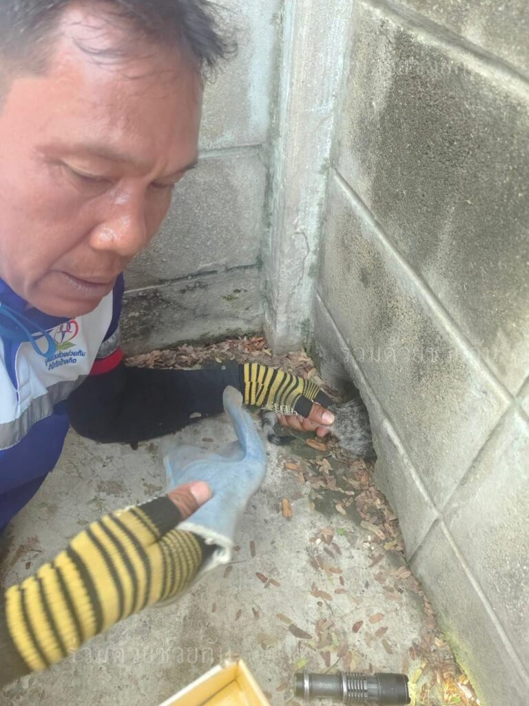 ประชาชนขอความช่วยเหลือ มีลูกแมวติดท่อระบายน้ำกำแพงหน้าบ้าน ถนนสวนสยาม ซอย 3 อาสาร่วมด้วยเร่งช่วยเหลือนำลูกแมวออกมาได้เป็นที่เรียบร้อย