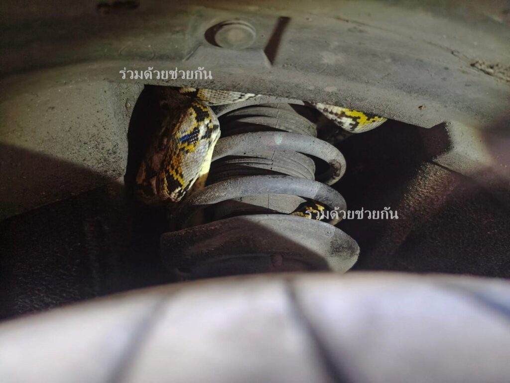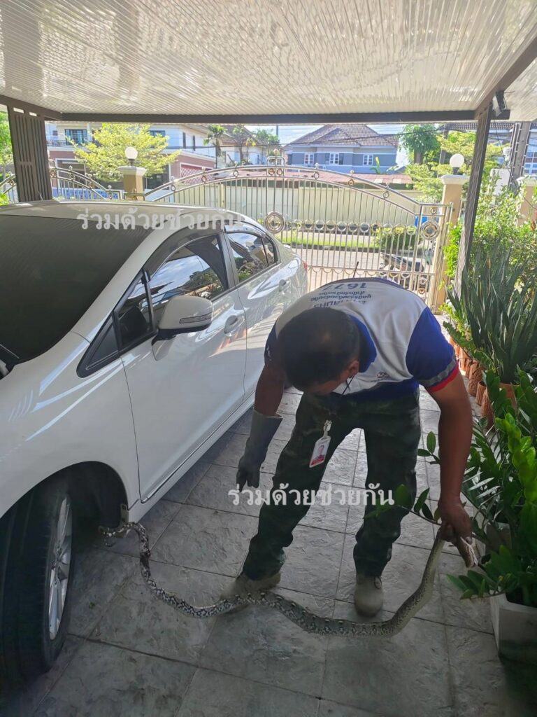 งูเหลือมเข้าใต้ท้องรถยนต์ ภายในซอยนิมิตรใหม่ 6/1 แขวงมีนบุรี เขตมีนบุรี กรุงเทพฯ อาสาช่วยเหลือนำงูออกมาได้สำเร็จ
