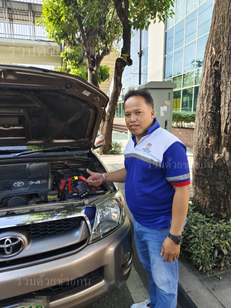อาสาร่วมด้วยช่วยกัน รับแจ้งจากประชาชนขอความช่วยเหลือรถแบตหมด สตาร์ทไม่ติด เป็นรถกระบะโตโยต้า สีบรอนซ์ทอง จอดอยู่ถนนพระราม 4 หน้าห้างบิ๊กซี พระราม 4 แขวงคลองตัน เขตคลองเตย กรุงเทพฯ