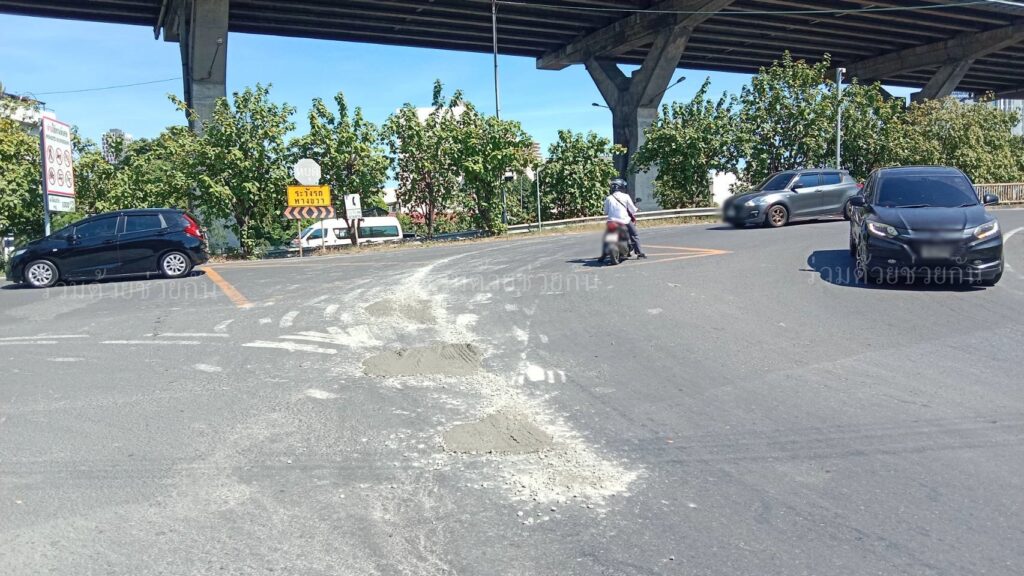 เตือนระวัง! รถบรรทุกทำปูนทุกหล่น ซอยสุขุมวิท 62