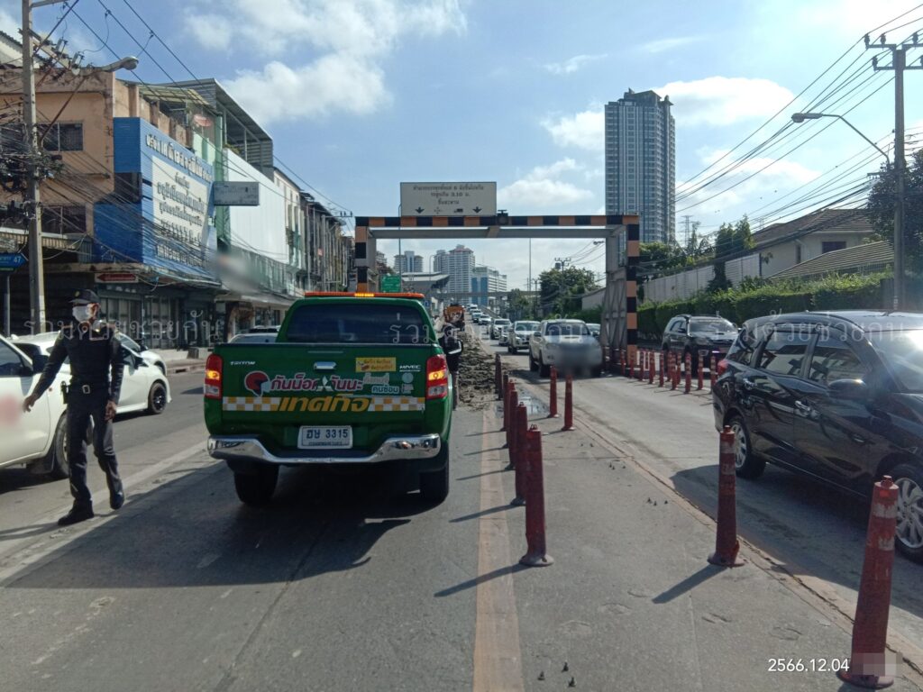อาสาร่วมด้วยวนาลัย 06 แจ้งรถบรรทุกทำดินตกหล่นจำนวนมาก บริเวณเชิงทางขึ้นสะพานข้ามแยกพัฒนาการ ถนนพัฒนาการ ขาออก แขวงสวนหลวง เขตสวนหลวง กรุงเทพฯ กีดขวางช่องทางจราจร เจ้าหน้าที่อยู่ระหว่างทำความสะอาดพื้นถนน รถติดสะสม ท้ายแถวปากซอยพัฒนาการ 41