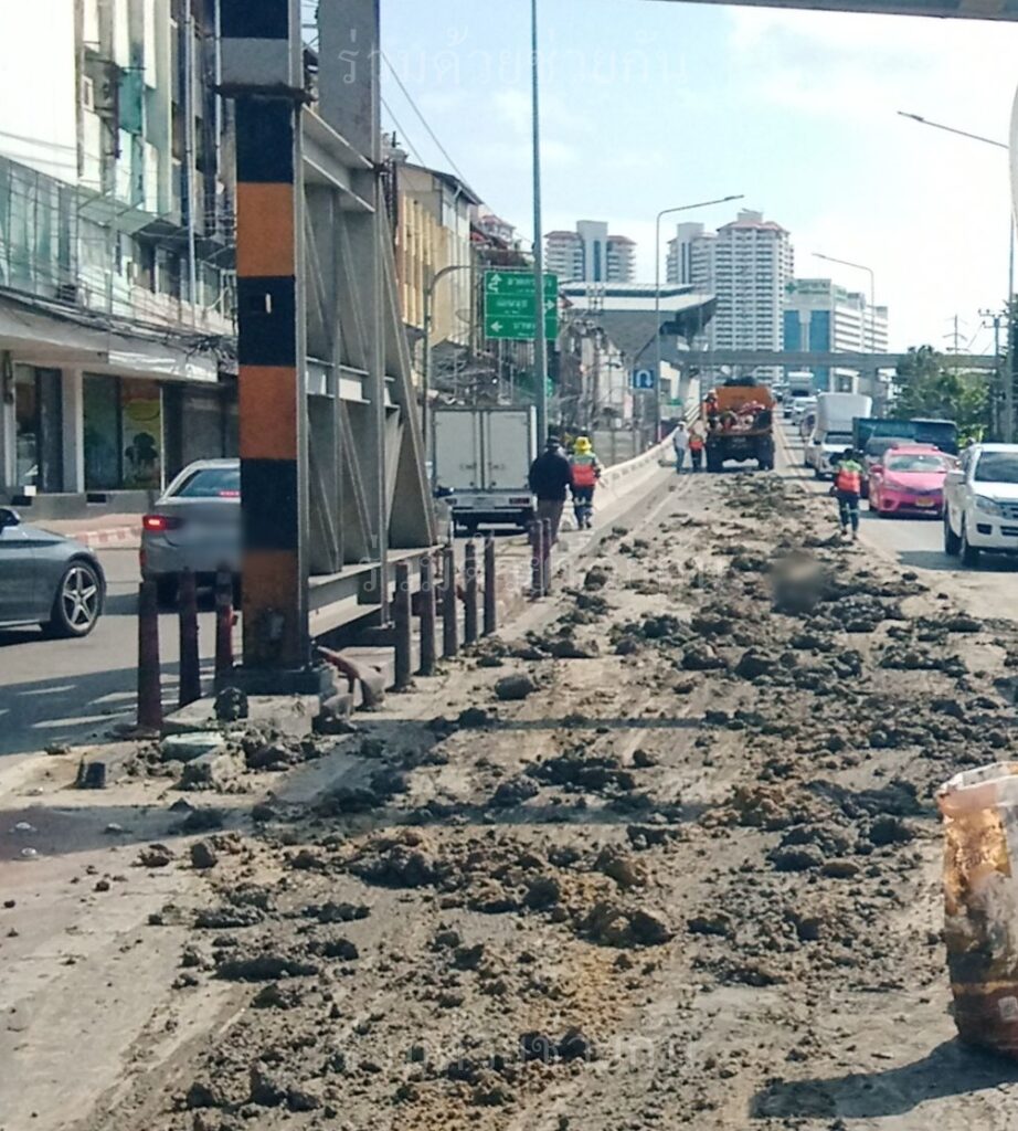 อาสาร่วมด้วยฯ แจ้งรถบรรทุกทำดินตกหล่น บริเวณสะพานข้ามแยกพัฒนาการ ถนนพัฒนาการ