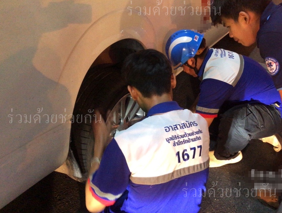 อาสาร่วมด้วยช่วยกัน รับแจ้งจากประชาชนขอความช่วยเหลือรถจอดเสีย ล้อยางหลังด้านขวารั่ว เป็นรถตู้โตโยต้า สีขาว จอดอยู่ถนนเพชรบุรี ซอย 17 แขวงถนนพญาไท เขตราชเทวี กรุงเทพฯ