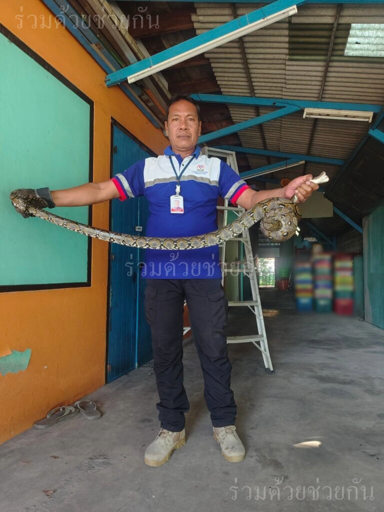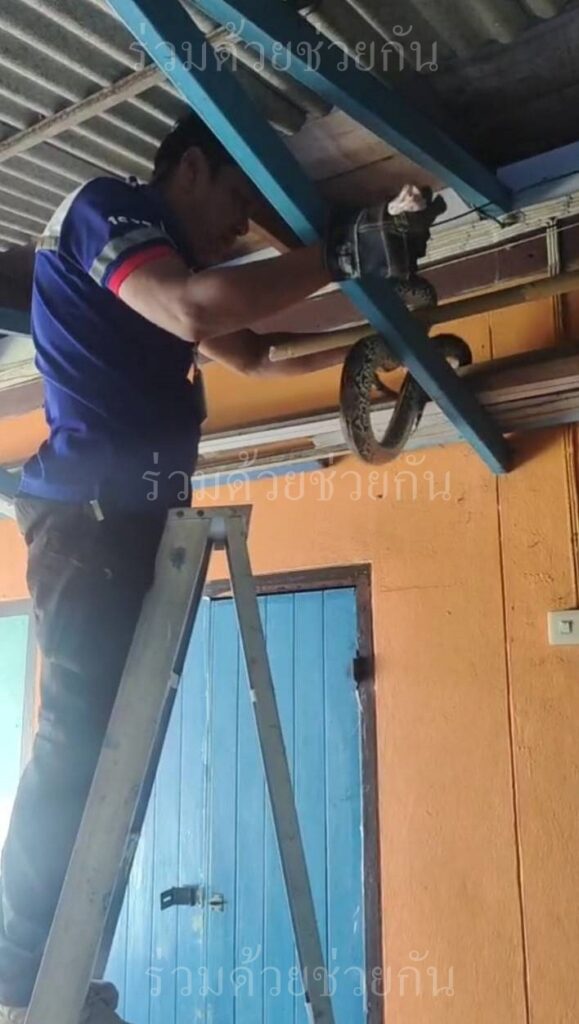 อาสาร่วมด้วยฯ ช่วยจับงูเหลือมใต้หลังคาบ้าน ซอยสุวินทวงศ์ 5 แขวงแสนแสบ เขตมีนบุรี กทม.