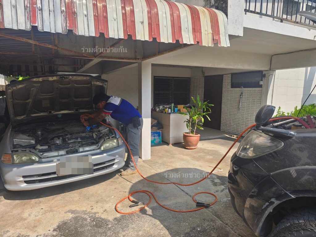 ศูนย์สื่อสารร่วมด้วยช่วยกัน ประสานอาสาร่วมด้วยคุ้มภัย 032 นำอุปกรณ์เข้าช่วยเหลือพ่วงแบตเตอรี่ได้สำเร็จ รถสตาร์ทติดขับเคลื่อนต่อไปได้