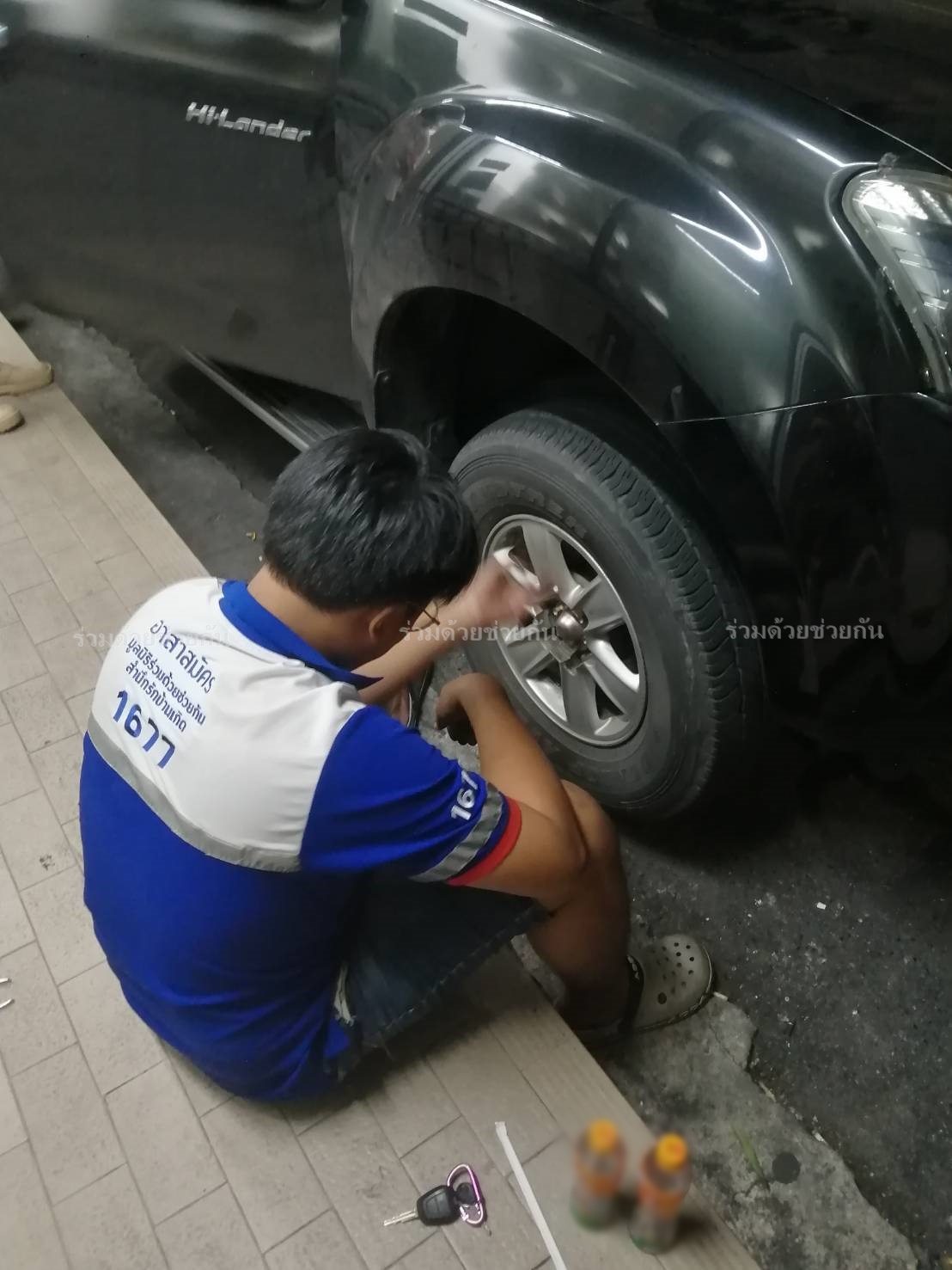 ประชาชนรถยางแตก ขับต่อไม่ได้ อาสาร่วมด้วยช่วยเปลี่ยนยางให้