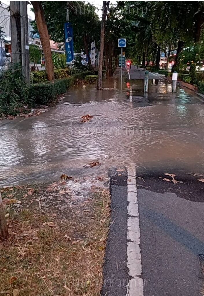 อาสาร่วมด้วยฯ แจ้งท่อประปาแตก บริเวณปั๊มแก๊ส ถนนประดิษฐ์มนูธรรม เร่งประสานซ่อมแซม