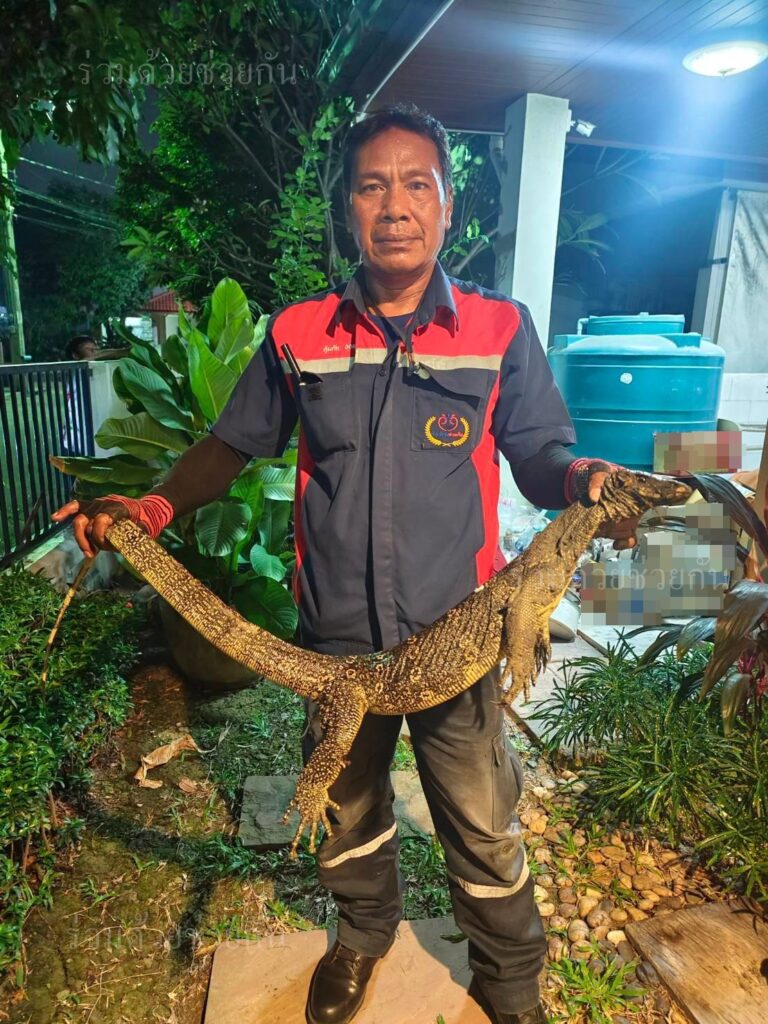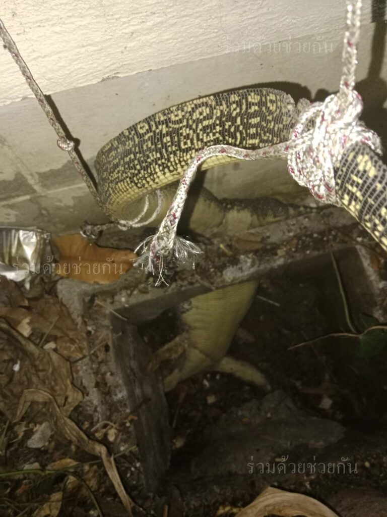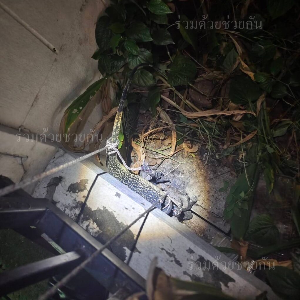 อาสาร่วมด้วยคุ้มภัย 006,032 ได้เข้าตรวจสอบพบเป็นตัวเงินตัวทองขนาดใหญ่จำนวน 1 ตัว ความยาวประมาณ 2 เมตร ติดอยู่ปากท่อระบายน้ำข้างกำแพงบ้านพัก ไปต่อไม่ได้ จึงได้นำอุปกรณ์เข้าช่วยเหลือ ทำการจับดึงตัวออกมาจากท่อระบายน้ำได้เป็นผลสำเร็จ และนำไปปล่อยคืนสู่ธรรมชาติเป็นที่เรียบร้อย พื้นที่สน.นิมิตรใหม่