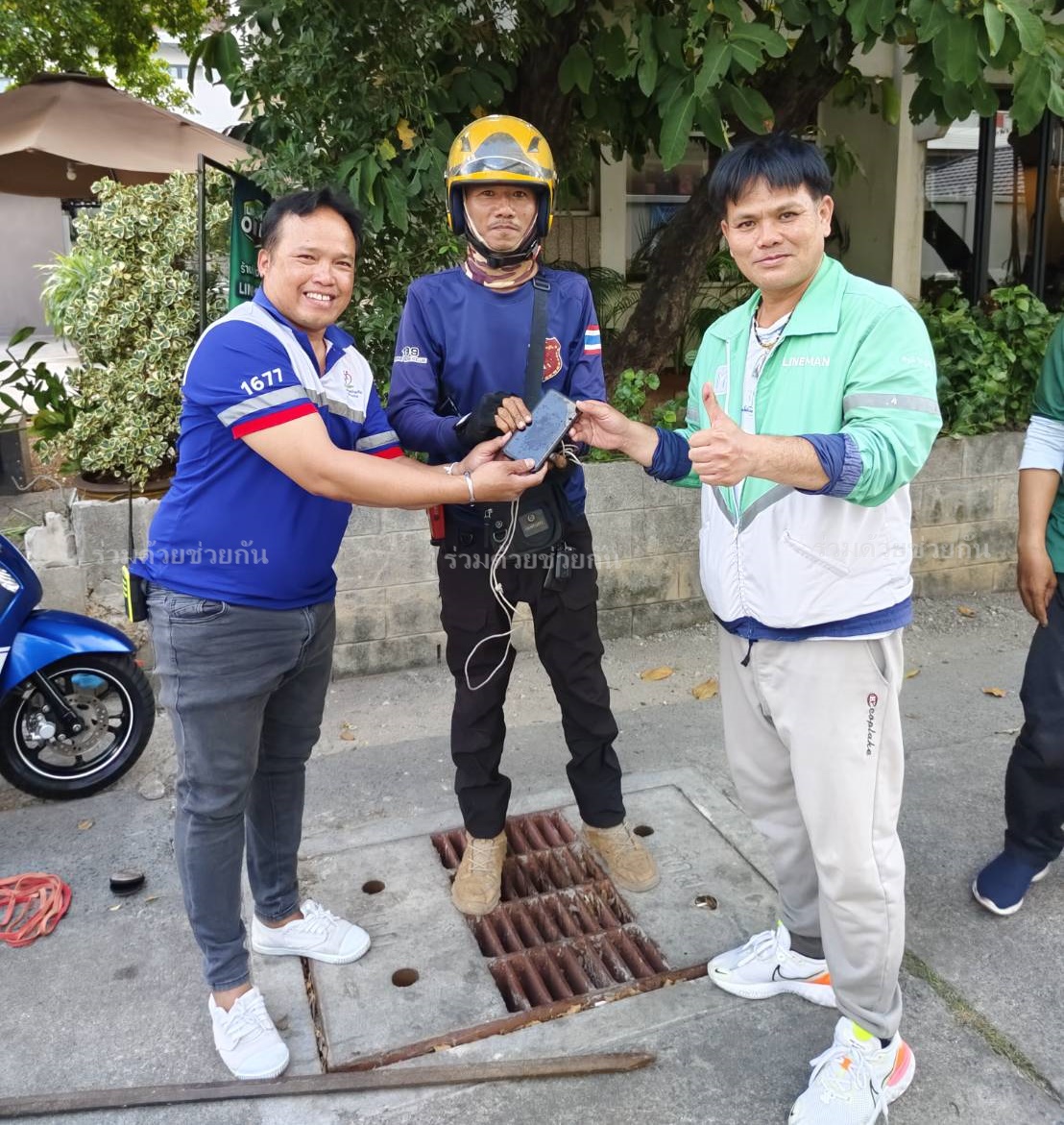 ประชาชนทำโทรศัพท์มือถือตกท่อระบายน้ำ อาสาร่วมด้วยช่วยค้นหา นำขึ้นมาได้สำเร็จ