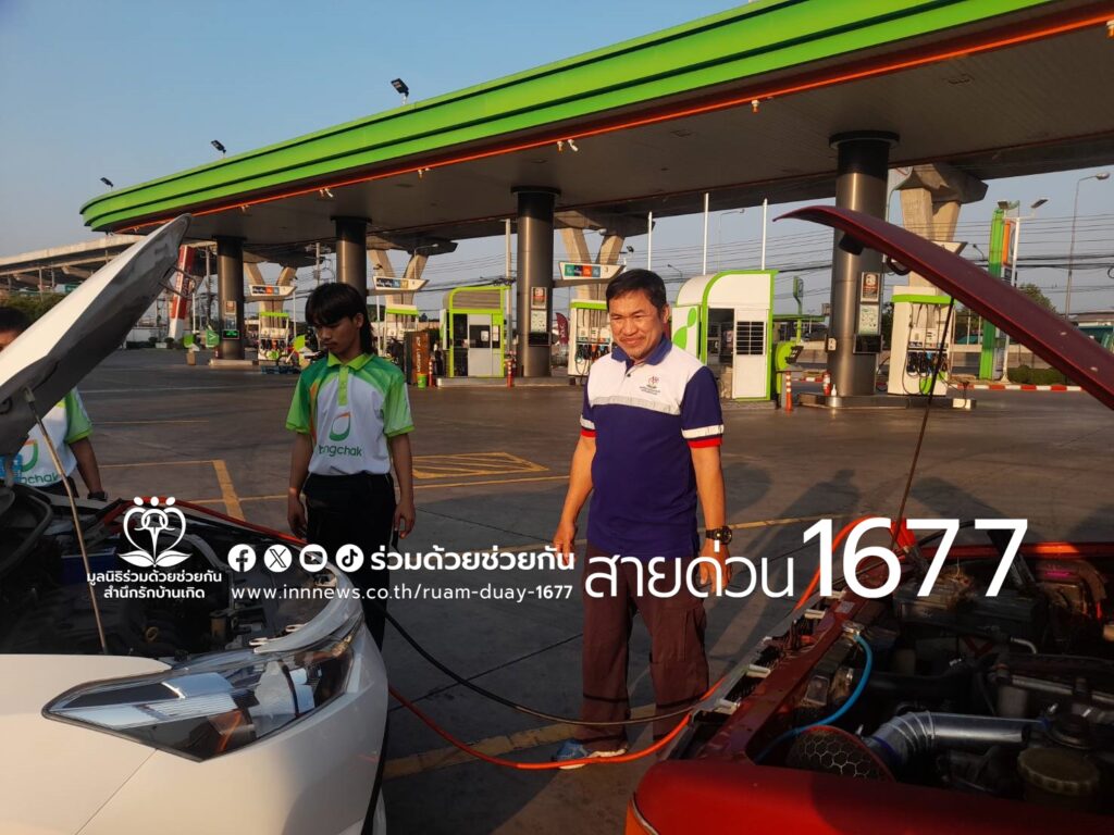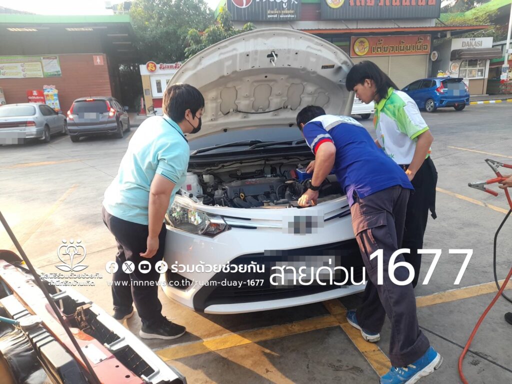 อาสาร่วมด้วยฯ ช่วยเหลือประชาชนรถเก๋งแบตเตอรี่หมด ภายในปั๊มน้ำมันบางจาก ถนนพะราม 2