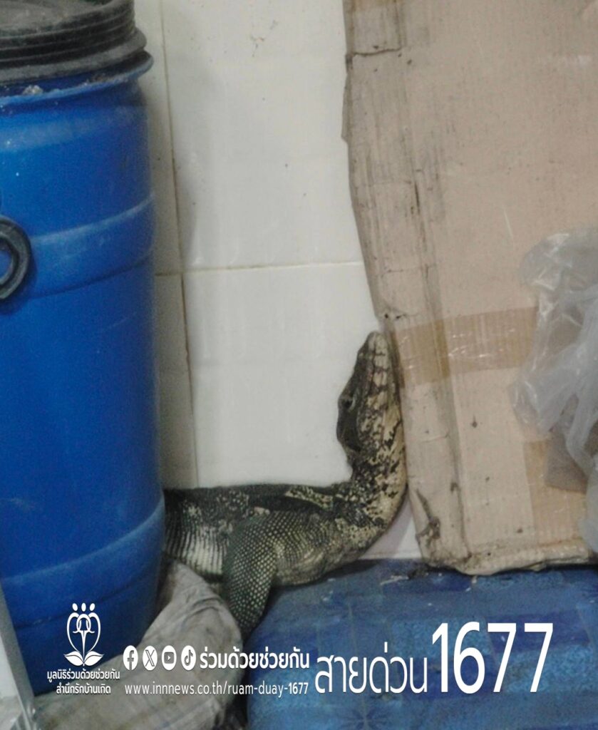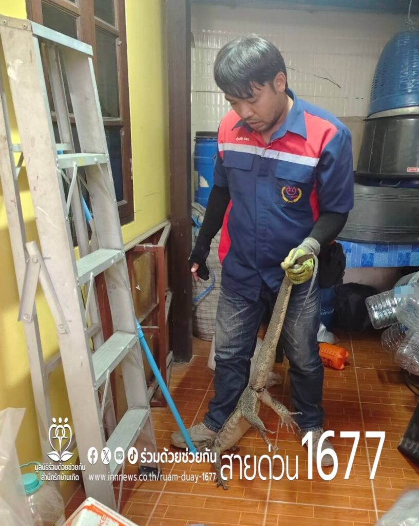 อาสาร่วมด้วยคุ้มภัย 032 ได้เข้าตรวจสอบพบเป็นตัวเงินตัวทองจำนวน 1 ตัว ความยาวประมาณ 1 เมตร หลบซ่อนตัวอยู่ห้องเก็บของหลังบ้านพัก จึงได้นำอุปกรณ์เข้าช่วยเหลือ ทำการคล้องจับดึงตัวออกมาได้เป็นผลสำเร็จ และนำไปปล่อยคืนสู่ธรรมชาติเป็นที่เรียบร้อย พื้นที่สน.บึงกุ่ม
