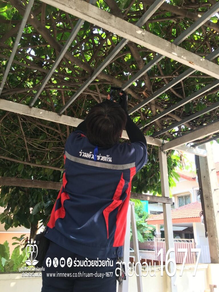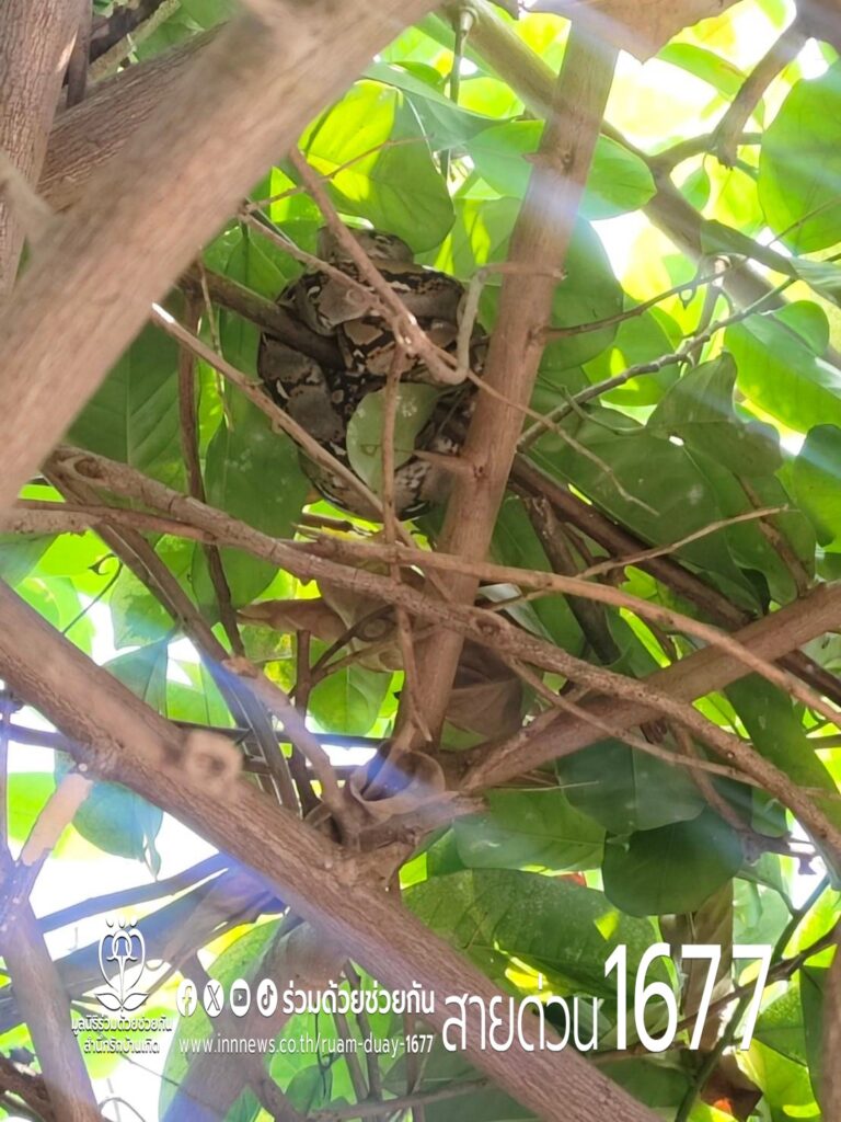 อาสาร่วมด้วยคุ้มภัย 032 ได้เข้าตรวจสอบพบเป็นลูกงูเหลือมจำนวน 1 ตัว ความยาวประมาณ 1 เมตร นอนขดตัวอยู่บนกิ่งไม้หน้าบ้านพัก จึงได้นำอุปกรณ์เข้าช่วยเหลือ ทำการคล้องจับดึงตัวลงมาได้เป็นผลสำเร็จ และนำไปปล่อยคืนสู่ธรรมชาติเป็นที่เรียบร้อย พื้นที่สน.คันนายาว