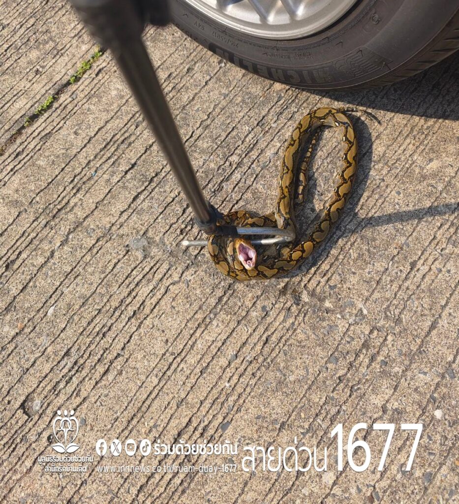 กลัวงู! แจ้งอาสาช่วยจับ ถ.เลียบคลองสอง ซอย 9