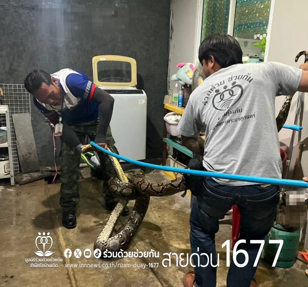 ประชาชนขอความช่วยเหลือให้ช่วยจับงูเหลือม ถ.พระยาสุเรนทร์ ซอย 30 อาสาร่วมด้วยเร่งช่วยจับนำไปปล่อยป่าให้เป็นที่เรียบร้อย