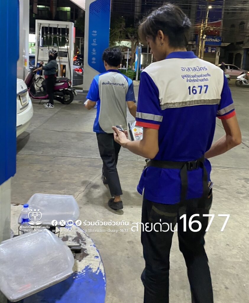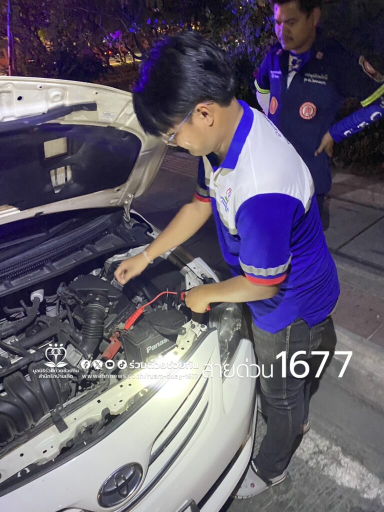 อาสาร่วมด้วยช่วยกัน รับแจ้งจากประชาชนขอความช่วยเหลือรถจอดเสีย น้ำมันหมดและแบตเตอรี่หมด เป็นรถยนต์โตโยต้า อัลติส สีขาว จอดอยู่หน้าไปรษณีย์ไทย ใกล้แยกประชาร่วมมิตร เขตห้วยขวาง กรุงเทพฯ