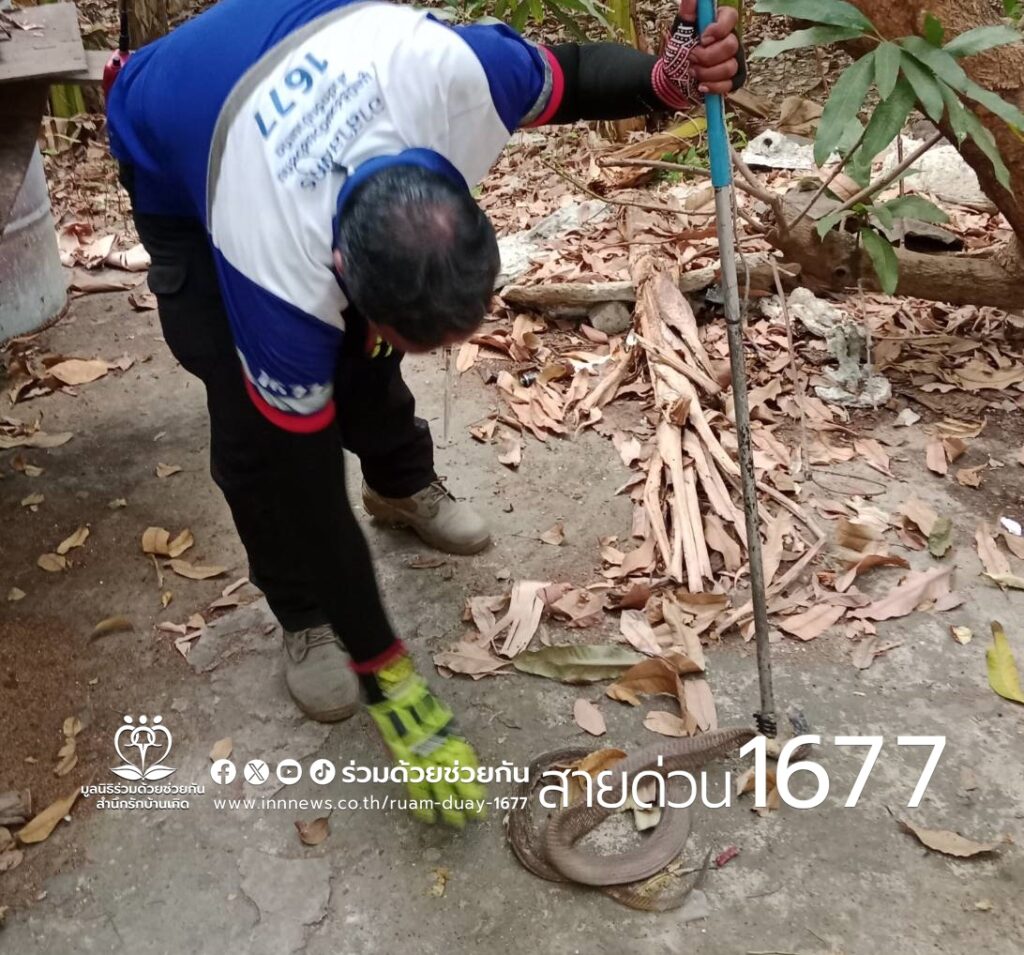 ประชาชนขอความช่วยเหลือให้ช่วยจับงูเห่า ถนนคลองลำเจียก ซอย 4 อาสาร่วมด้วยเร่งช่วยจับนำไปปล่อยป่าห่างไกลบ้านเรือนให้เป็นเรียบร้อย