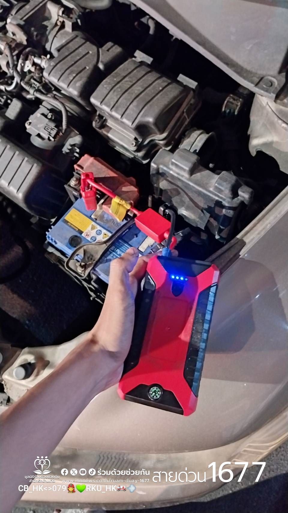 อาสาร่วมด้วยช่วยเหลือประชาชนรถแบตเตอรี่หมด จนรถสตาร์ทติดสามารถเดินทางต่อไปได้