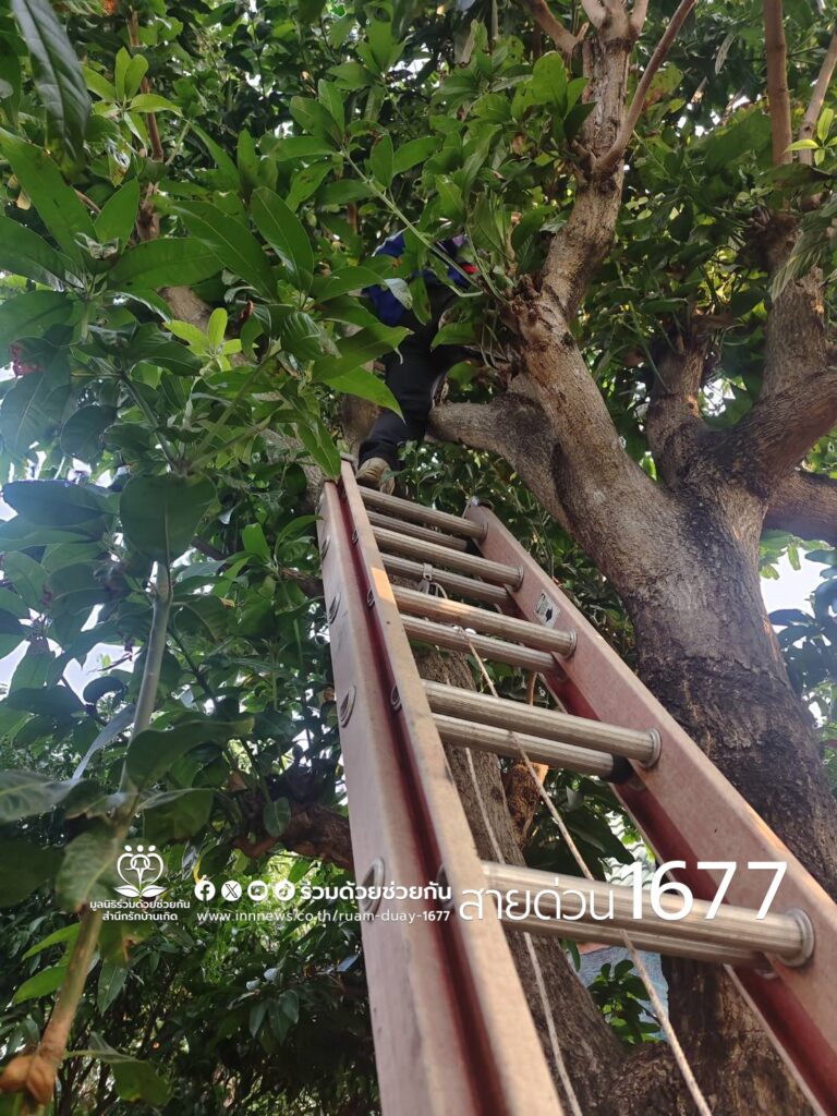 วันที่ 15 กุมภาพันธ์ 2567 ศูนย์สื่อสารร่วมด้วยช่วยกัน รับแจ้งจากอาสาร่วมด้วยคุ้มภัย 006 และ 032 ออกให้การช่วยเหลือประชาชน ขอความช่วยเหลือจับงูบนต้นไม้บริเวณบ้านพัก ภายในซอยกาญจนาภิเษก 11/1 ถนนกาญจนาภิเษก แขวงทวีวัฒนา เขตทวีวัฒนา กรุงเทพฯ