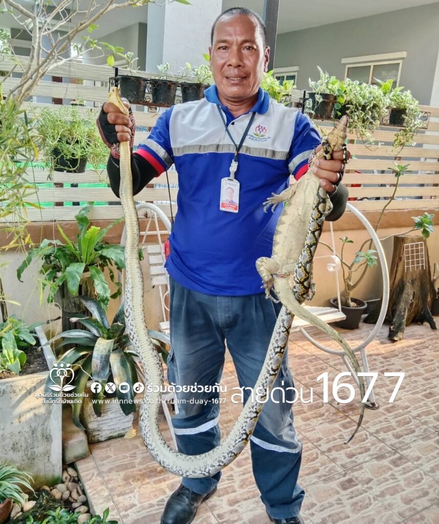 ประชาชนขอความช่วยเหลือจับงูเหลือมกำลังรัดตัวเงินตัวทอง ถ.บึงขวาง ซอย 4 อาสาร่วมด้วยเร่งช่วยเหลือจับไปปล่อยป่าเป็นที่เรียบร้อย