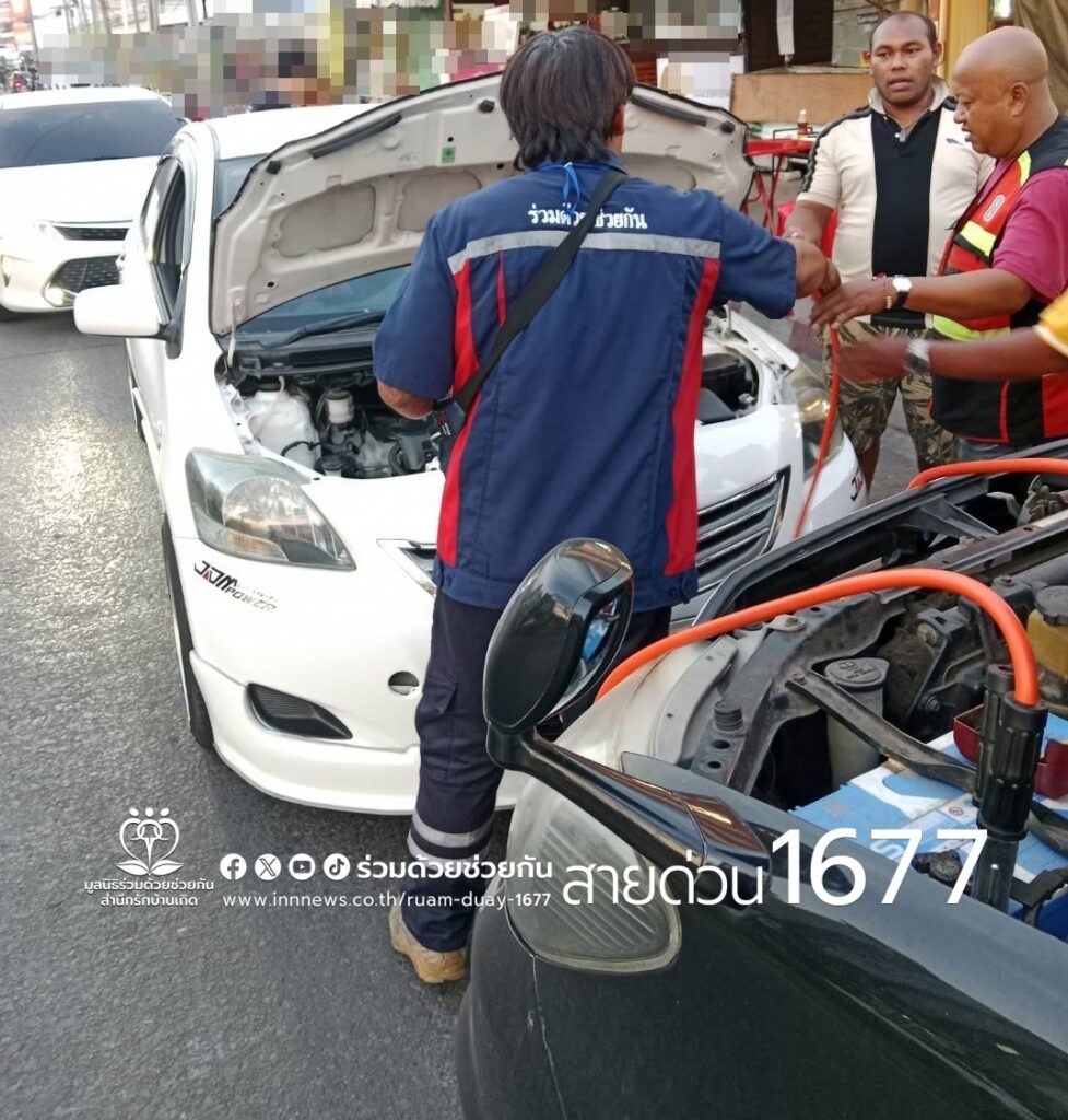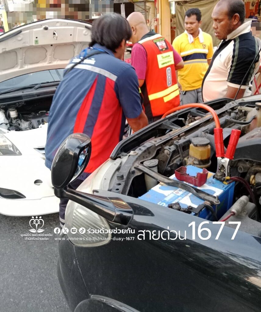 อาสาร่วมด้วยคุ้มภัย 006,031,032,038 ได้นำอุปกรณ์เข้าช่วยเหลือ ทำการพ่วงแบตเตอรี่รถให้ รถสตาร์ทเครื่องยนต์ติดเป็นที่เรียบร้อย ขับเคลื่อนต่อไปได้ พื้นที่สน.บางชัน