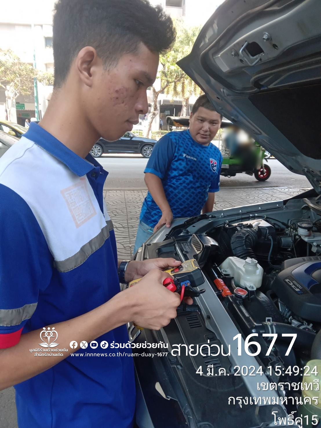 อาสาร่วมด้วยช่วยประชาชนรถแบตเตอรี่หมด จนรถสตาร์ทติด สามารถเดินทางต่อไปได้ตามปกติ