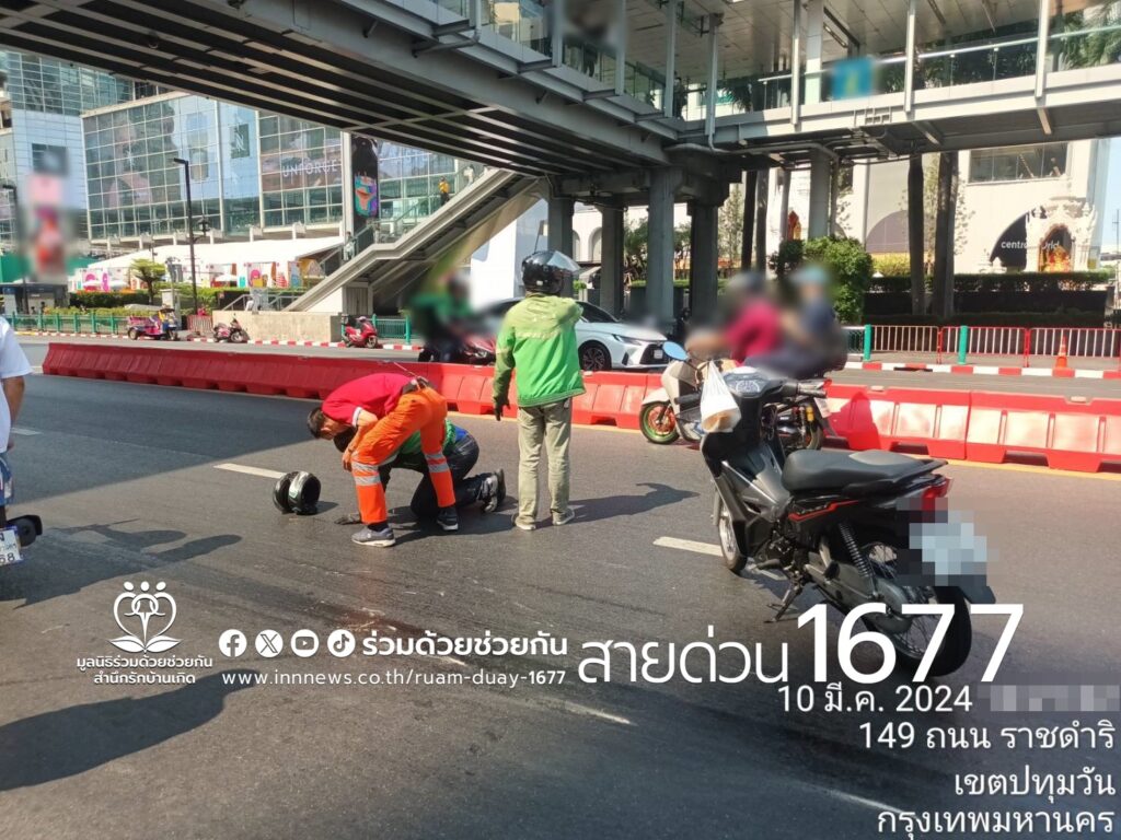 อาสาร่วมด้วยฯ แจ้งเตือน มีคราบน้ำมันบนถนน หน้าห้างเดอะมาร์เก็ต แบงคอก ถนนราชดำริ