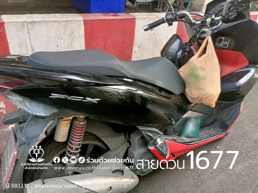 อาสาร่วมด้วยฯ แจ้งอุบัติเหตุรถจักรยานยนต์ลื่นล้มคราบน้ำสิ่งปฏิกูล บริเวณห้าแยก ณ ระนอง